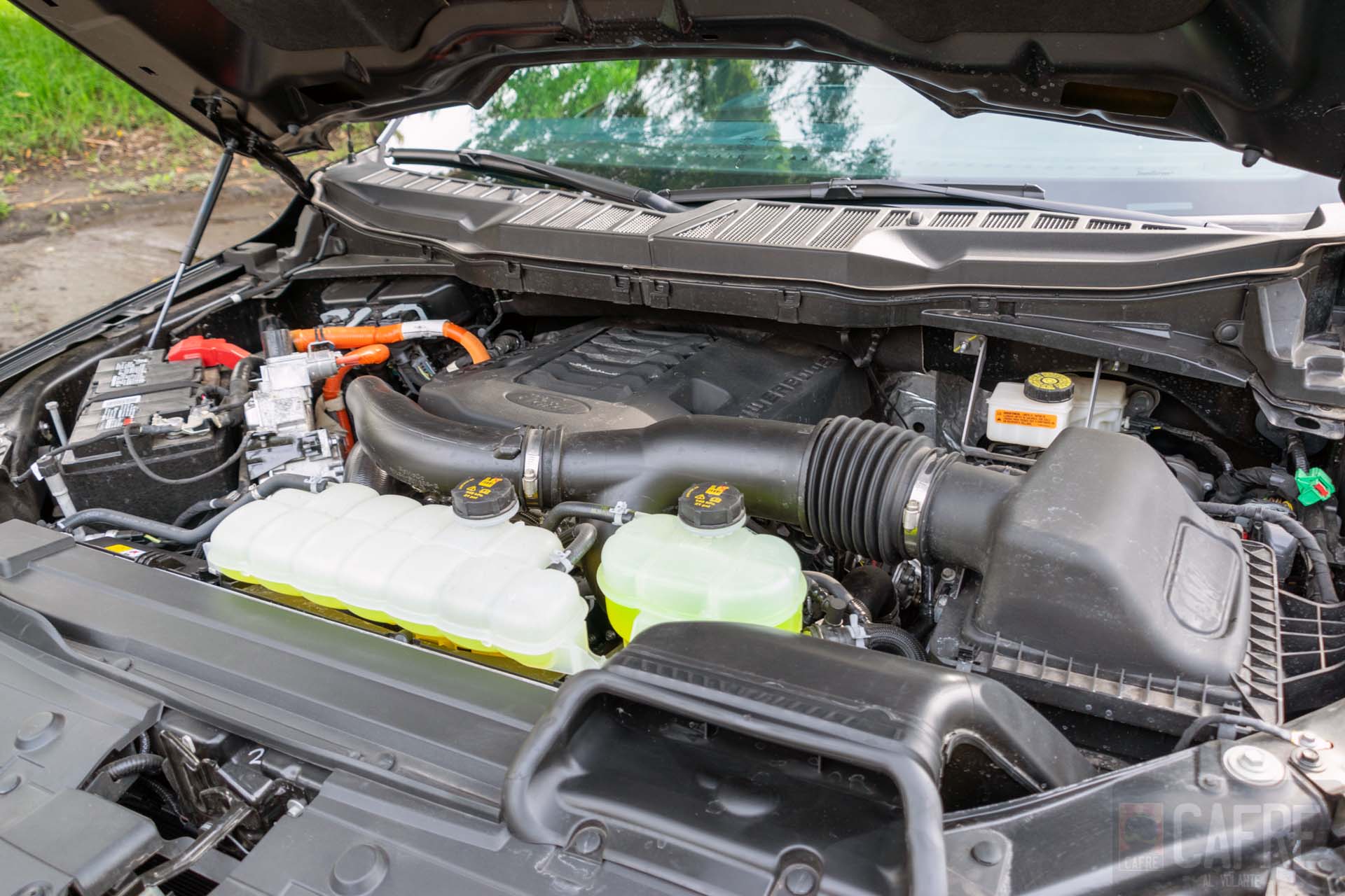 Con un motor V6 de 3.5L biturbo junto con el motor eléctrico de 35 KW tendremos una potencia total de 431 hp y 577 lb/pie de torque. Con esto te permite remolcar hasta 5,760 kg cifra suficiente para lo que se te ocurra transportar. En nuestra prueba, el rendimiento de combustible fue casi 8 km/l de promedio tendiendo trayectos de hasta 10.2 km/l, que para un vehículo de este tonelaje y capacidad de arrastre es bastante bueno.