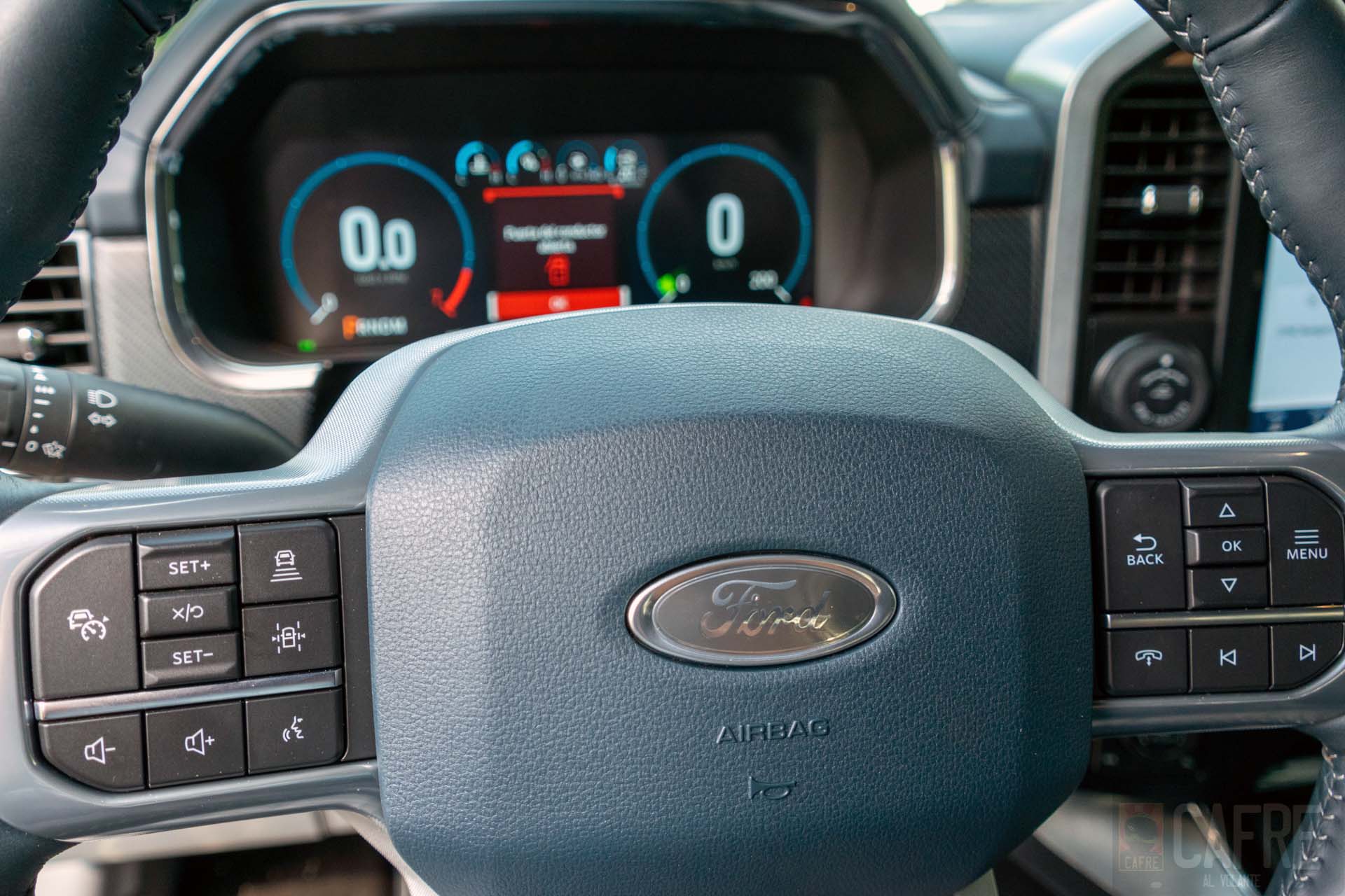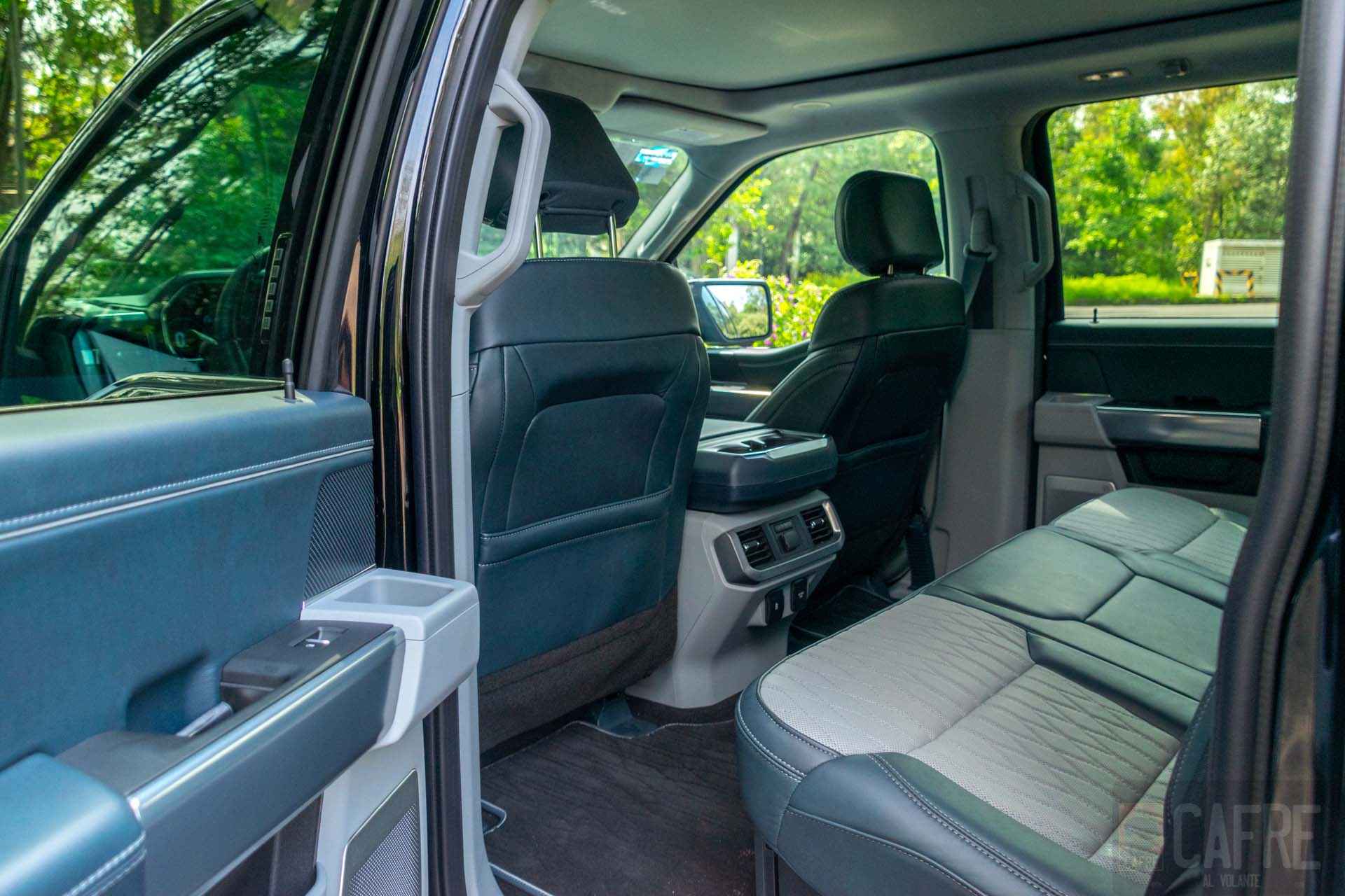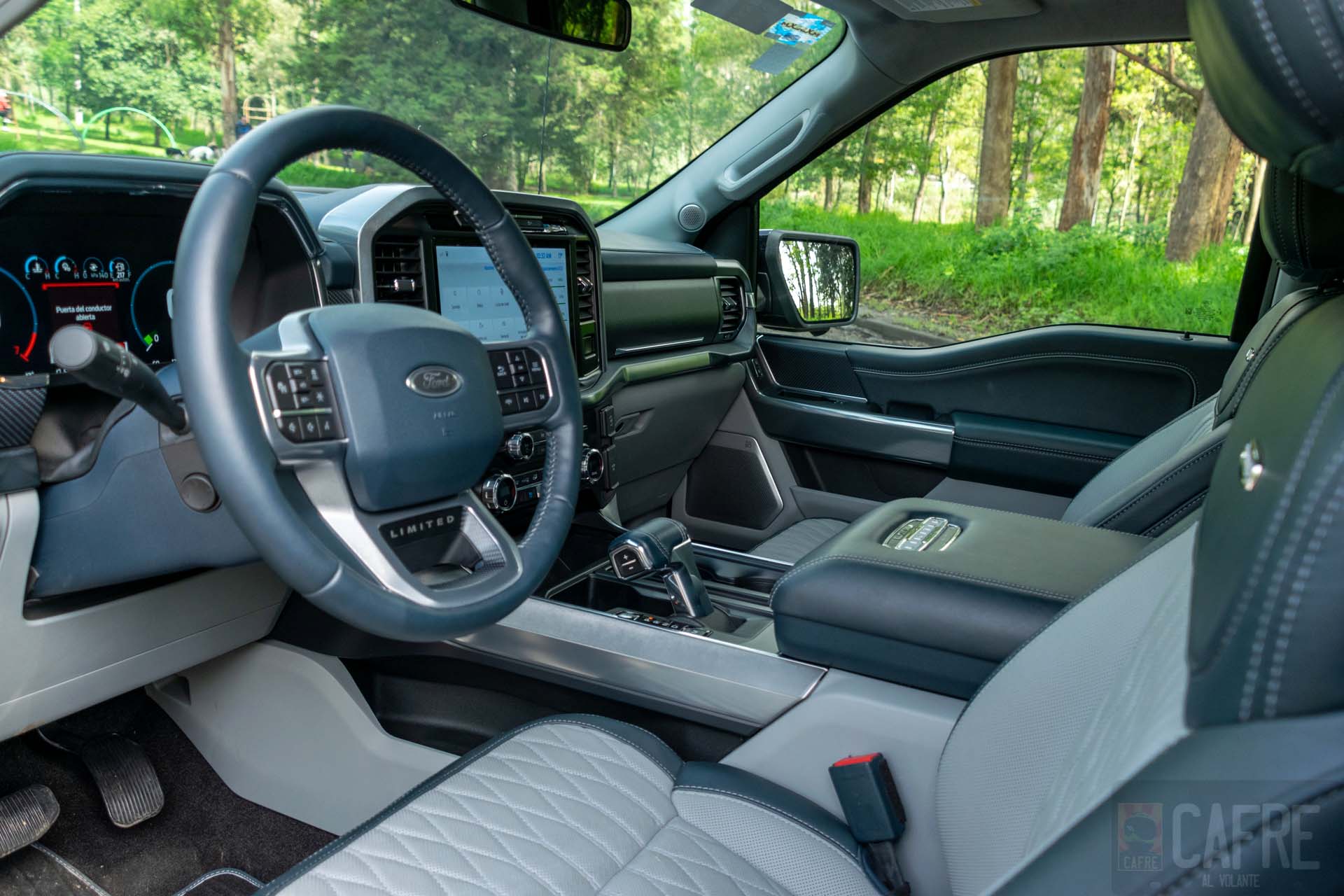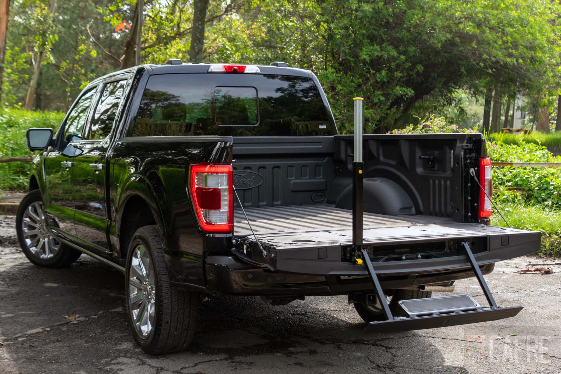 Esta pickup es de dimensiones notorias, tanto que, todo lo verás pequeño estando en ella. El diseño exterior impone la parrilla con el enorme emblema de Ford, los rines de 22 pulgadas, el color Negro Obsidiana que le da bastante elegancia y también la practicidad de la batea recubierta para una mayor duración al momento de cargarla y también la fuente de energía que se encuentra en ella para conectar herramienta o cualquier aparato eléctrico que desees.