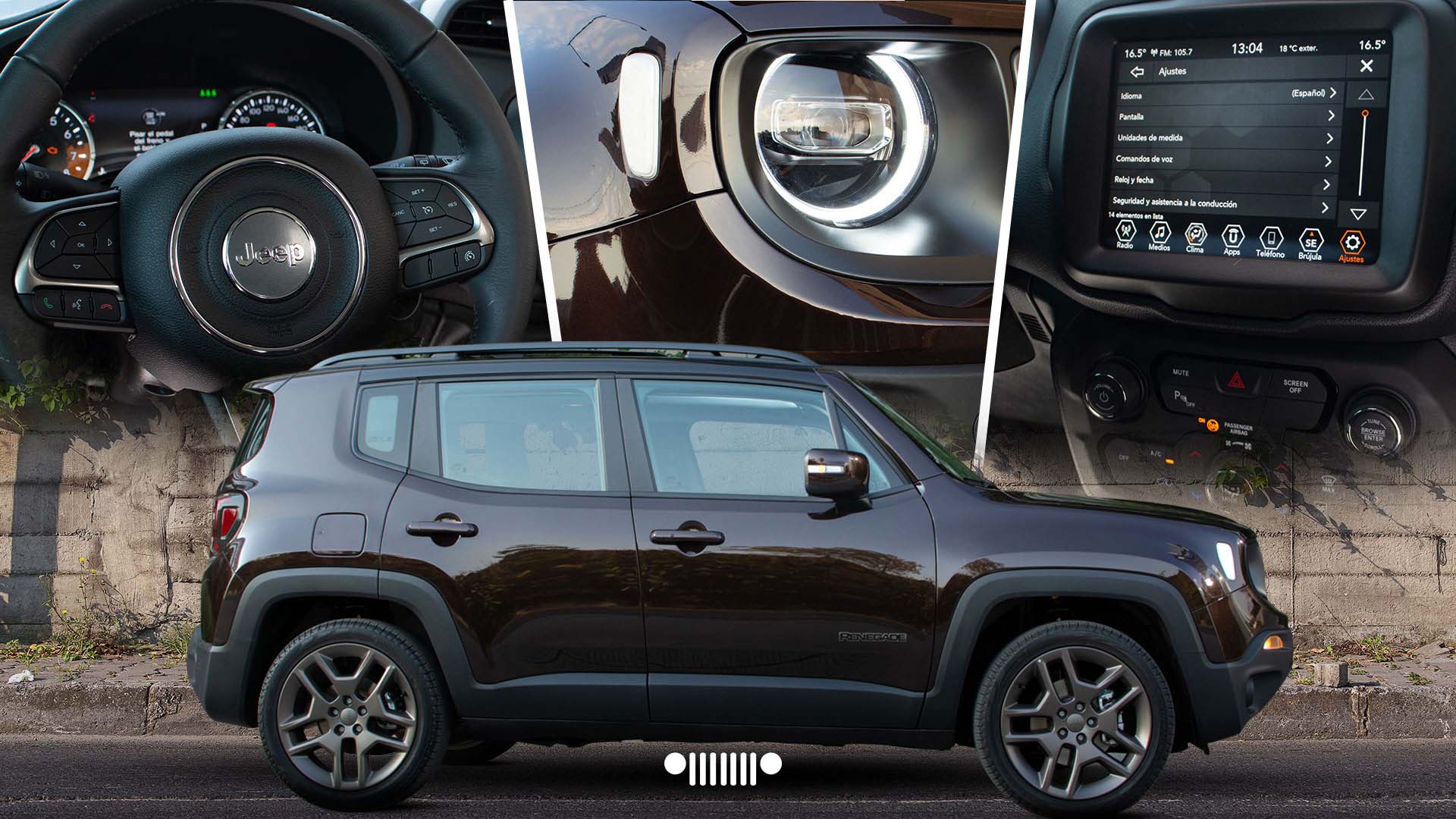 Jeep Renegade Bronze Edition 2022 cuenta con quemacocos dual panorámico CommandView. el nuevo diseño de faros con tecnología LED y luces traseras.