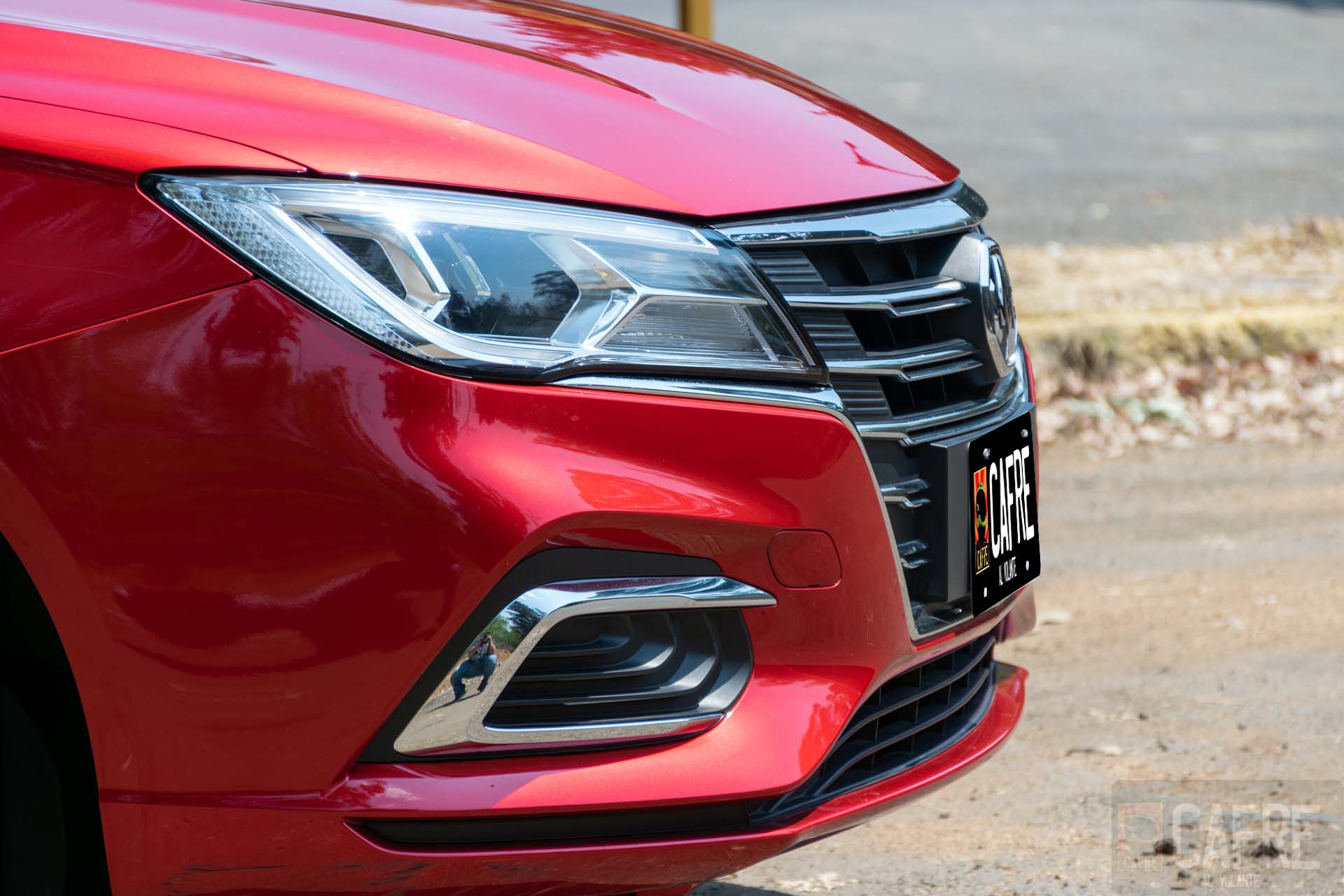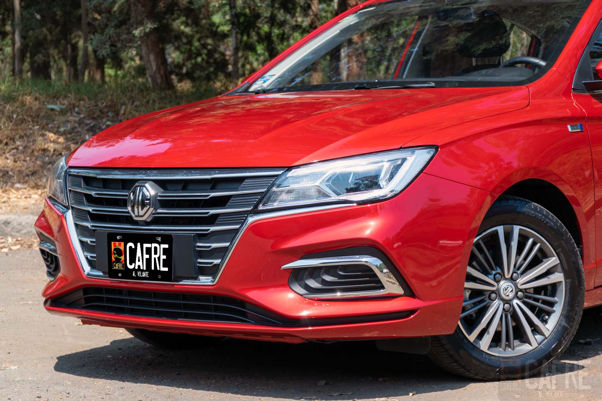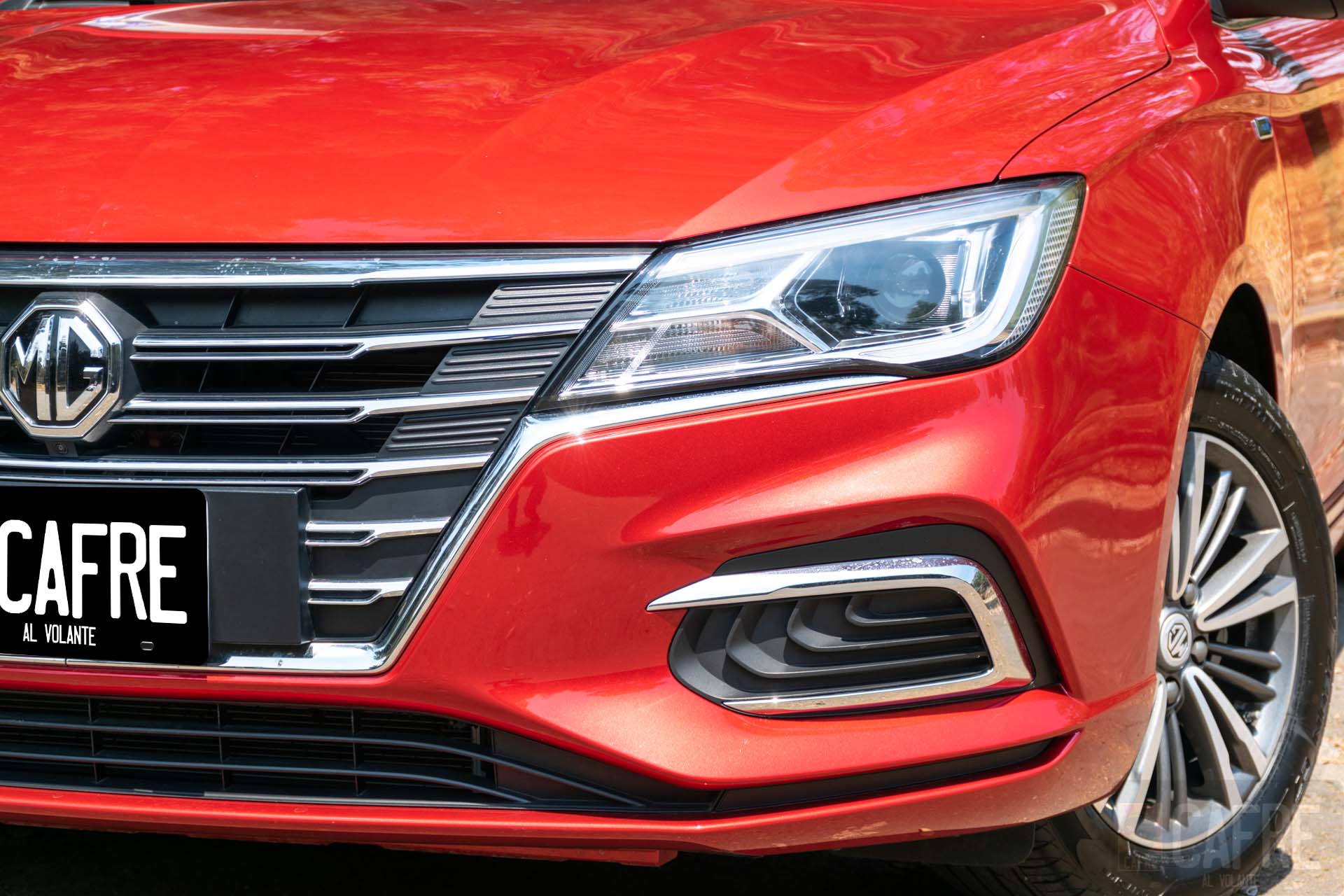 Comenzando por el exterior, el MG 5 nos ofrece un diseño discreto, sin líneas agresivas ni excentricidades. El frente vemos la gran parrilla en forma de “V” con acabado en cromo con el logo octagonal de MG al centro y debajo de este encontraremos una de las cuatro cámaras que incorpora este auto. Los faros son de halógeno con luces diurnas de LED. En la fascia, para darle un aspecto deportivo, notaremos las tomas de aire simuladas a los costados y para resaltar también integran una moldura como en forma de ala. Por último, tendremos una toma de aire inferior que ayudará a darle ventilación al motor.