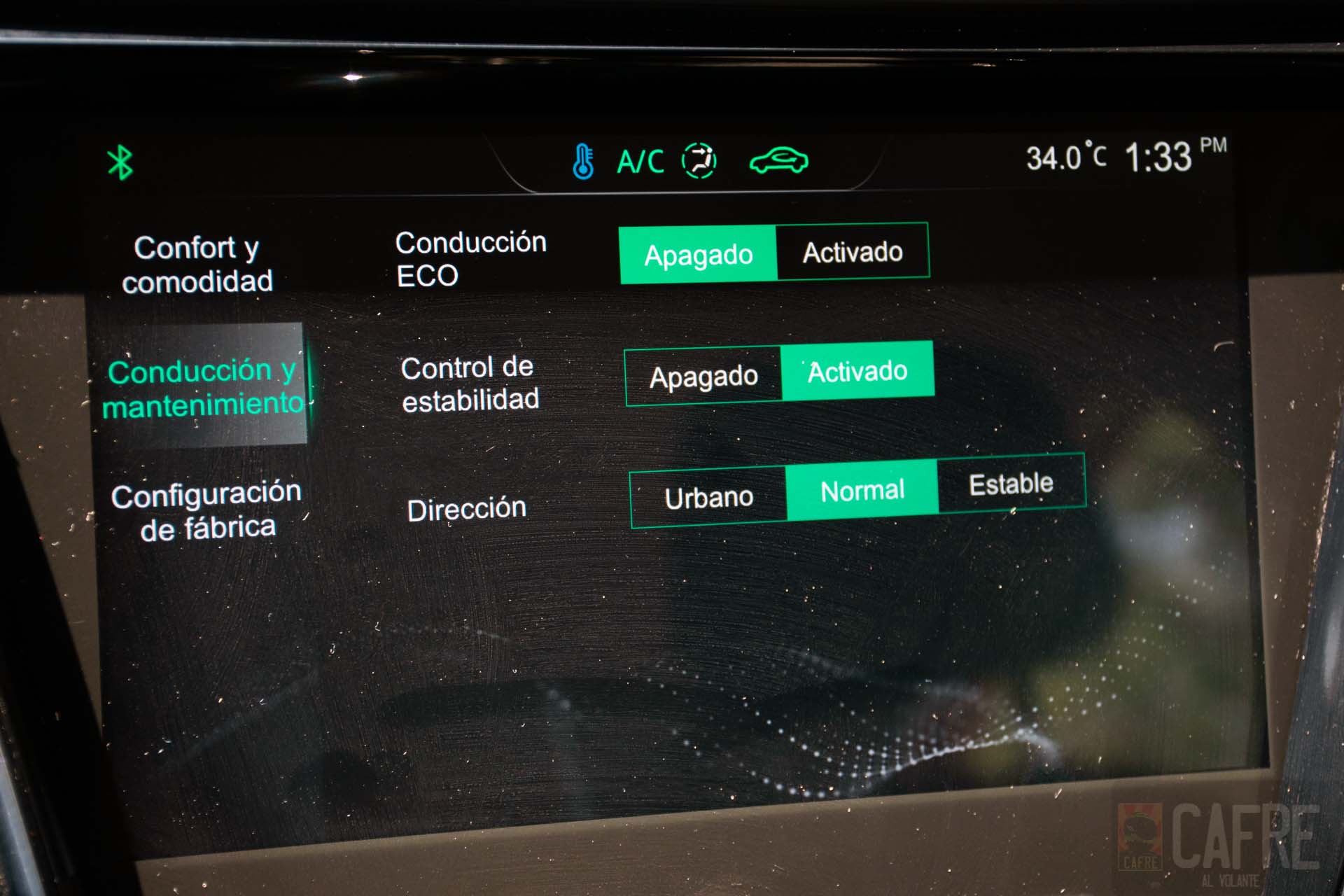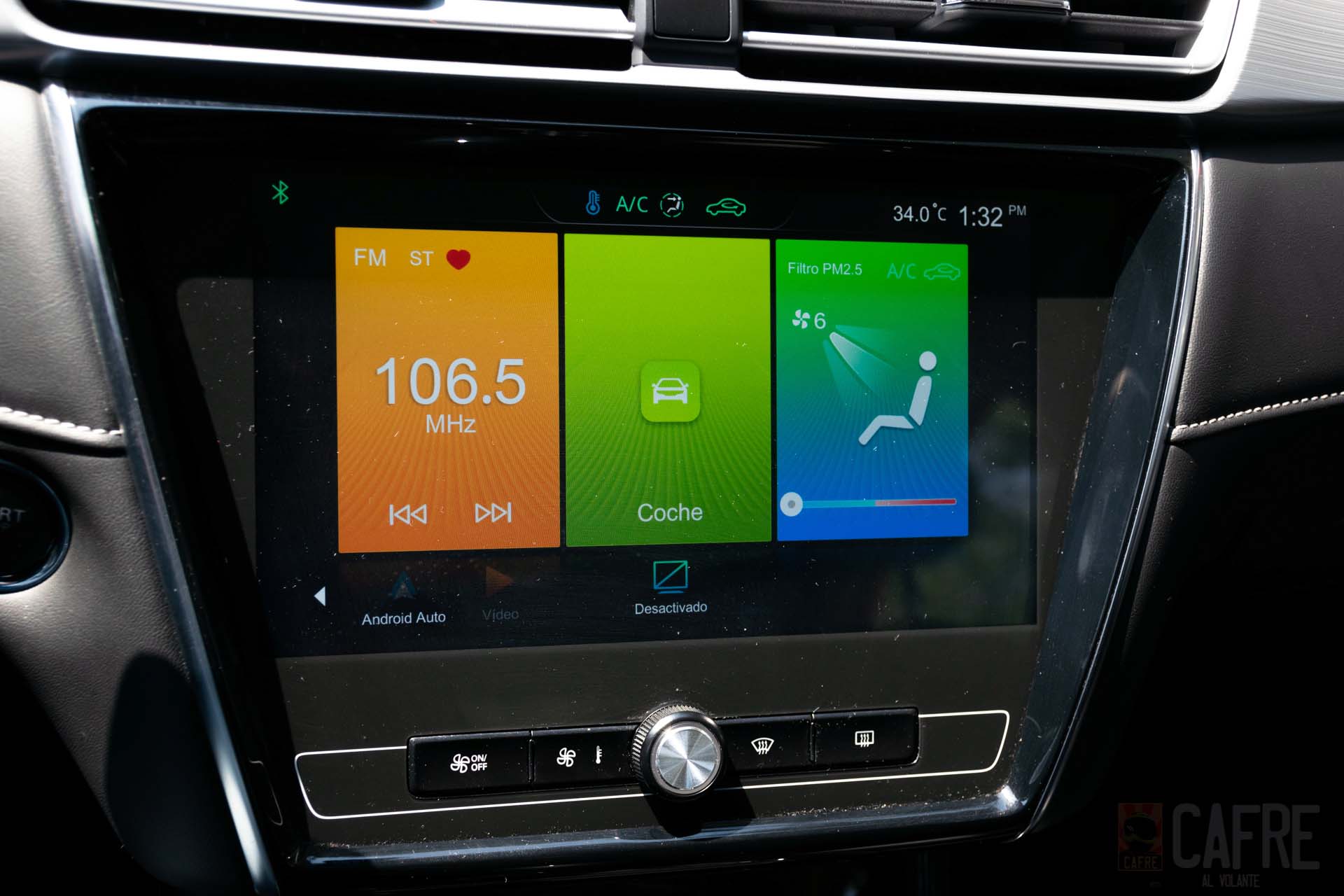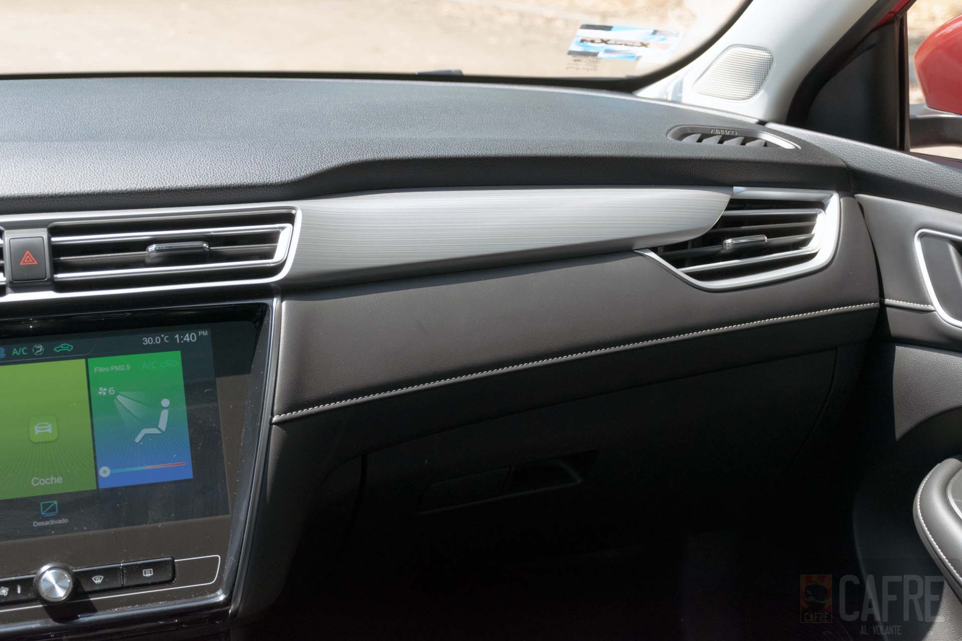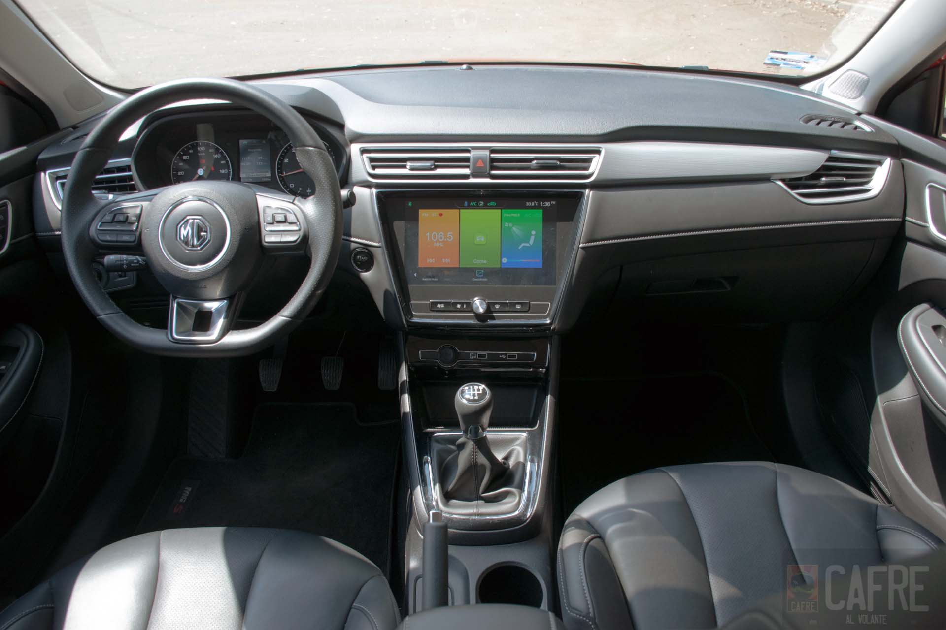 El tablero tendremos un diseño también en “V” asemejando al de la parrilla exterior, aquí resaltará la pantalla táctil de 10.1 pulgadas MG Connect con Android Auto y Apple Carplay que al reproducirlos este se escala al tamaño completo volviéndose bastante útil para estas aplicaciones. Una de las características de este sistema de infoentretenimiento es que en la pantalla podrás realizar funciones del auto, como el aire acondicionado y el modo de conducción ECO, la sensación del volante y el control de tracción. Otra de las funciones para esta pantalla es la reproducción de la cámara de reversa con vista de 360 grados y con animación en tercera dimensión, un aspecto que no se ve en vehículos de este segmento.