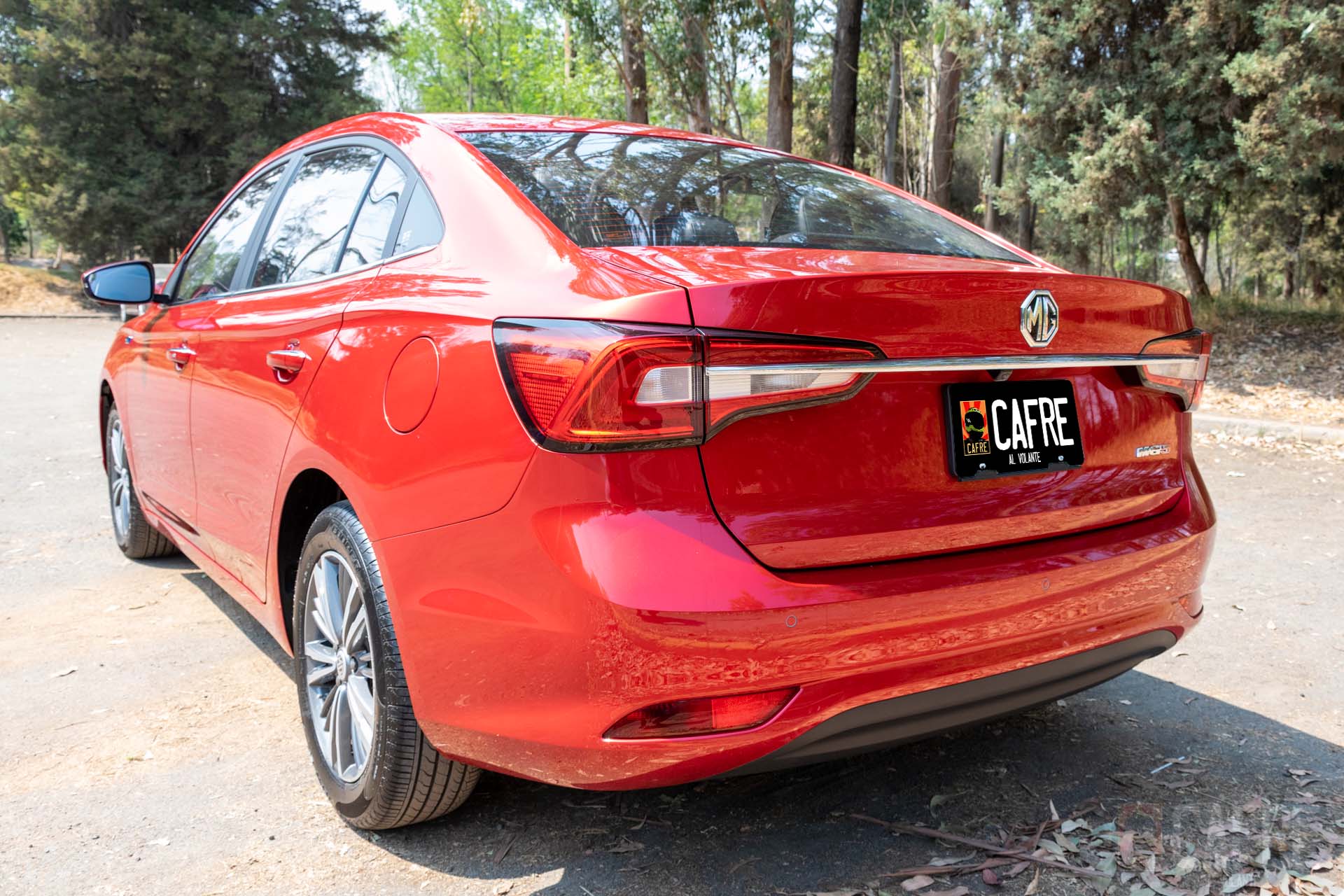 La parte trasera también tendrá un sutil diseño, veremos las luces traseras que se unirán a través de una moldura cromada que cruza por la cajuela, tendremos de nuevo el emblema octagonal, el modelo MG5 y la cuarta cámara que servirá al momento de maniobrar en reversa y en la fascia tendremos los sensores de proximidad.