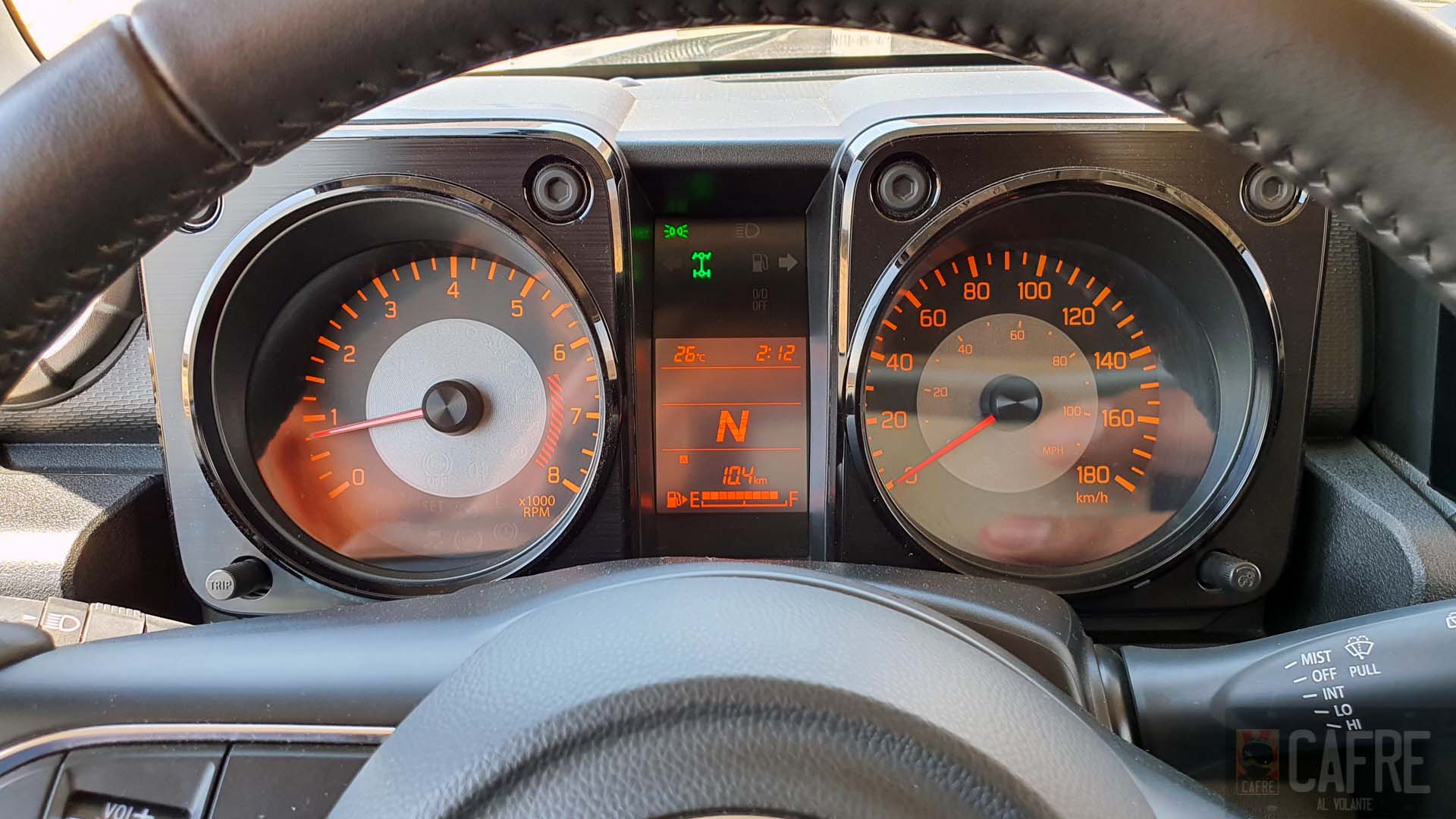 A primera vista, el Jimny resalta por su tamaño debido a sus 3,480 mm de largo, 1645 mm de ancho y 1,720 mm de alto. Una de las primeras pruebas era si una persona mayor de 1.90 m podría caber debido a sus dimensiones y el resultado fue satisfactorio solo que las piernas de una persona alta pueden rozar con el volante debido a que no tiene ajuste de profundidad, sólo de altura. La posición de manejo se siente más alto debido a sus asientos que no cuenta con ajuste de altura. Salvo estos dos detalles fuera de lo común, el Jimny tiene buen espacio interior. Ya estando dentro de los vehículos comenzó nuestro viaje.