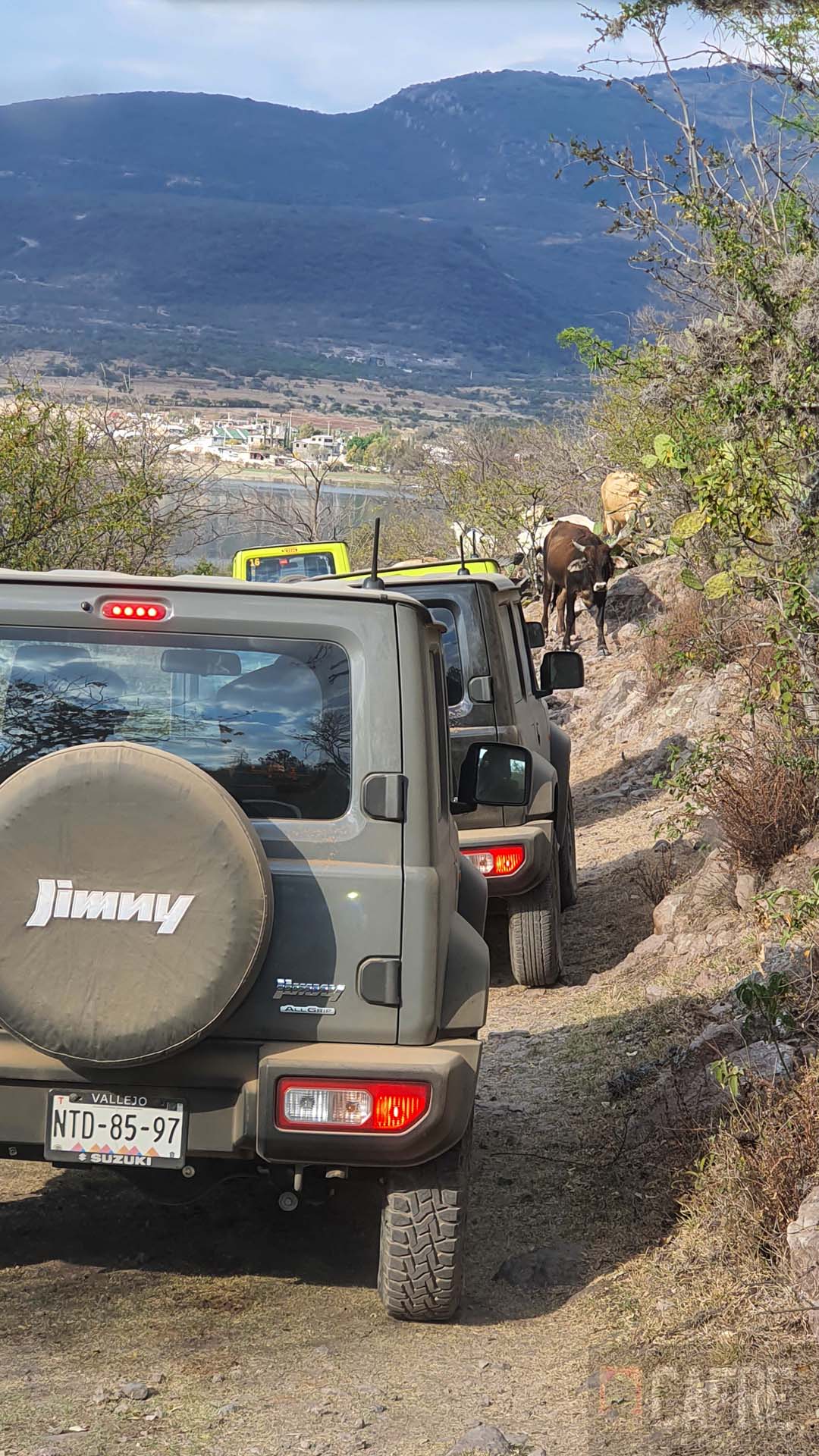 Terminando de comer, regresamos a los Jimny y volvimos al camino, ahora toda esta parte del trayecto consistió en terracería y caminos con piedra suelta, siendo la verdadera prueba para el Jimny. Algunos momentos en este trayecto fue que el sendero fue bloqueado por vacas causándonos un breve contratiempo, pero lo que se llevó la prueba fue una subida con demasiadas rocas, siendo la mejor parte de la prueba demostrando que a pesar de su tamaño es un verdadero 4×4.