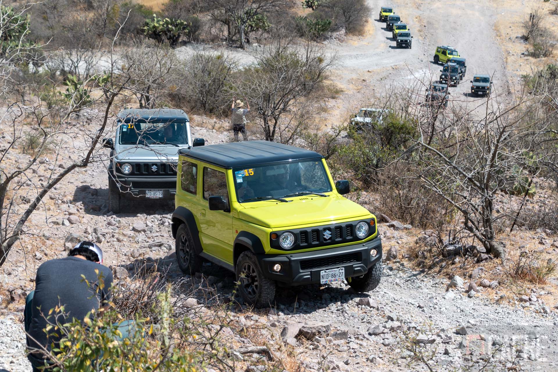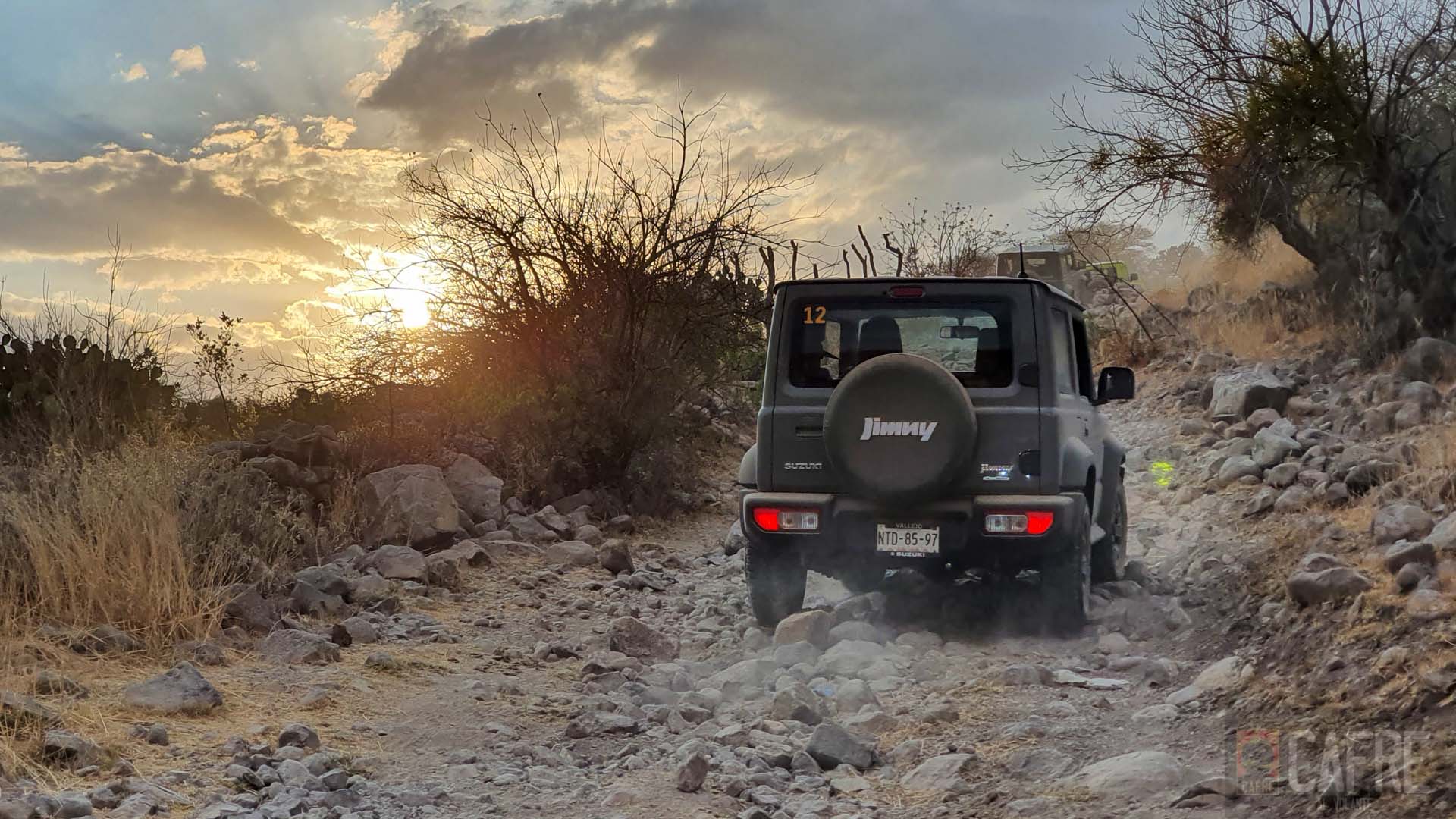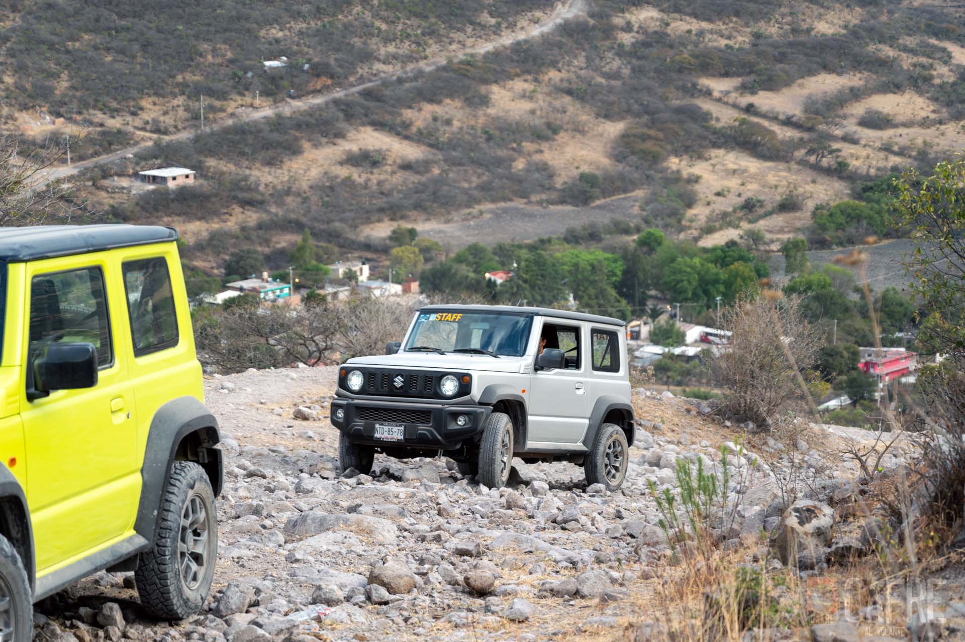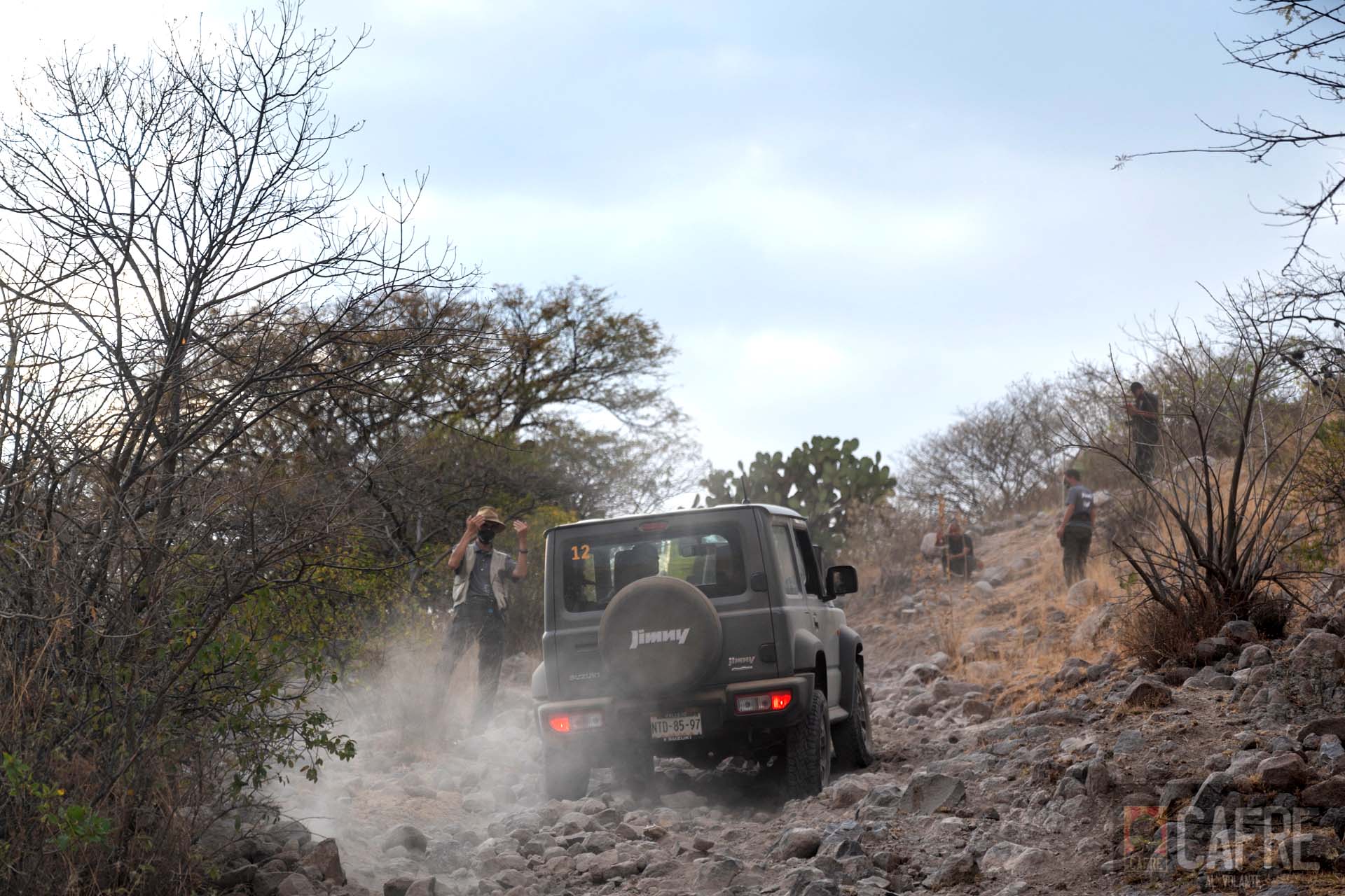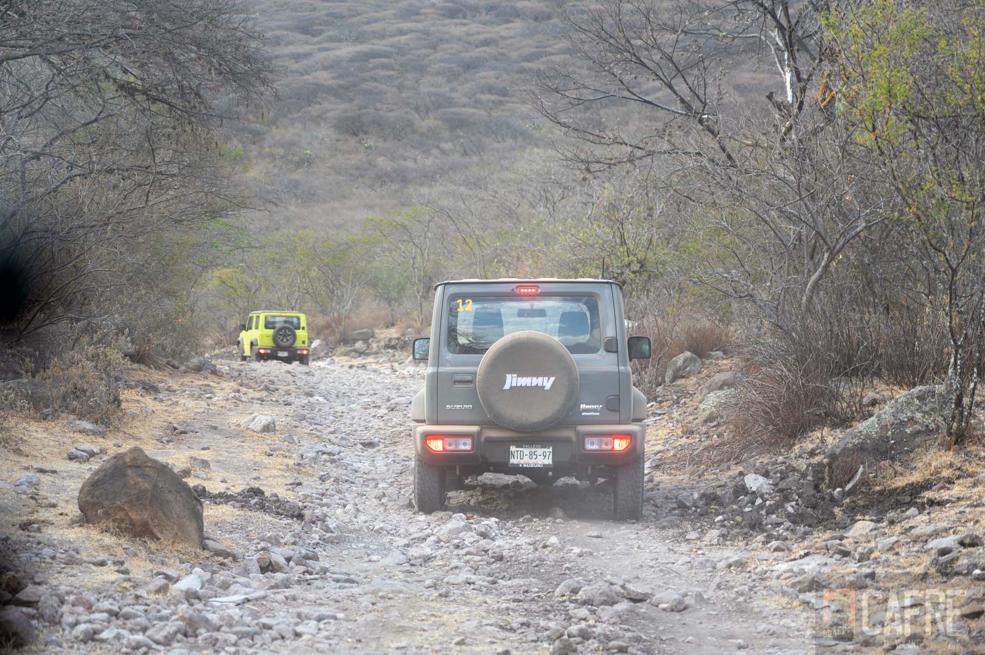 Desde el volante en esta prueba, uno tiene varias preocupaciones, debido al tamaño de las rocas, estas podrían dañar la parte inferior del Jimny, pero gracias a sus 210 mm de altura al piso, ángulo de ataque de 38°, ventral de 28° y 49° de salida, era muy difícil que pegara con alguna irregularidad en la superficie (salvo casos muy extremos). Es increíble lo fácil que lo hizo ver, eso sí, lo más gracioso fue como el Jimny iba brincando en lo que cruzaba las rocas y encontraba la tracción.