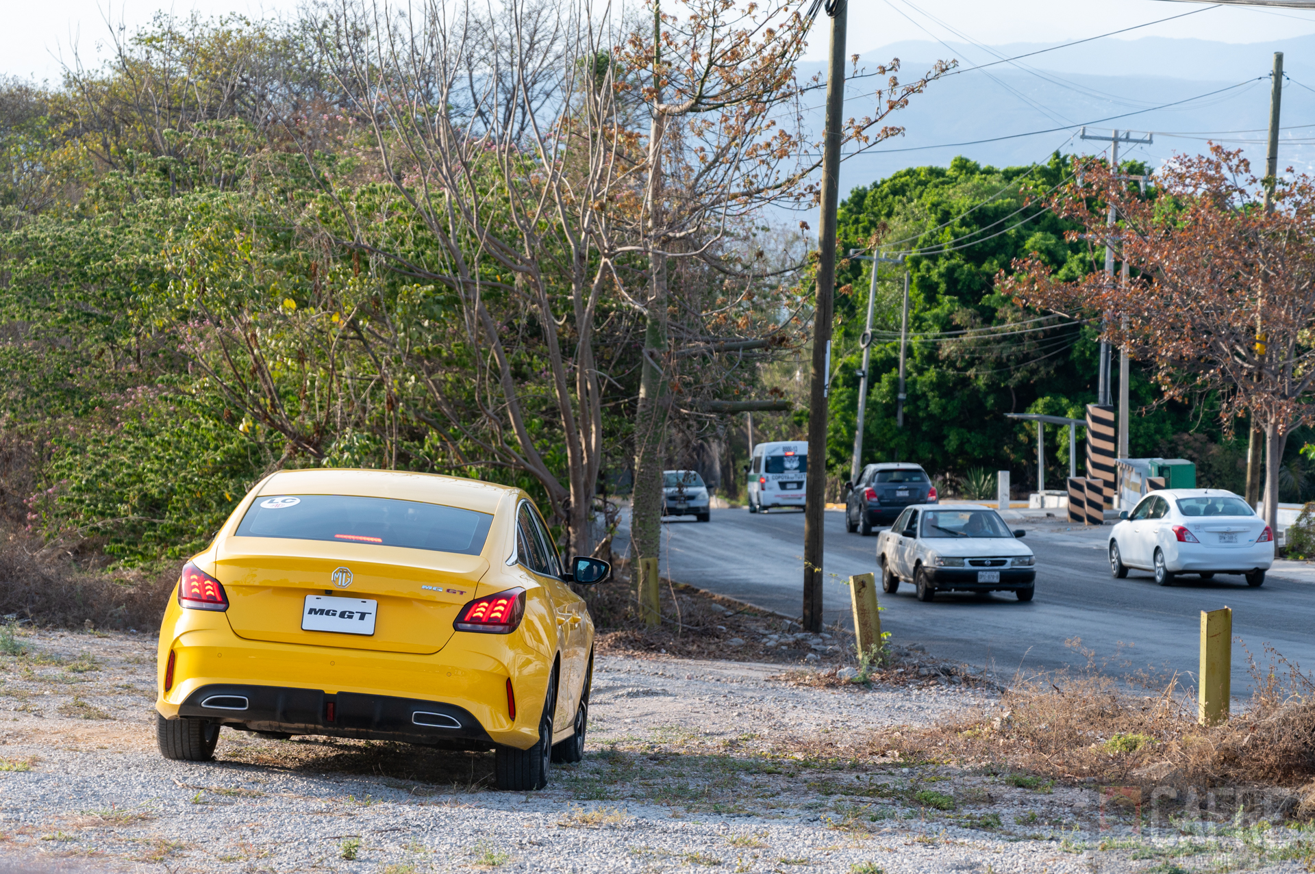 La suspensión independiente al frente tipo McPherson y de barra de torsión atrás hizo bastante confortable el manejo y más al viajar en la autopista. Algo que se notó mientras conducíamos en la autopista fue que el volante no cuenta con ajuste dependiendo la velocidad ya que se sentía bastante suave en este tramo de la prueba. Con el tren motriz que incorpora este MG GT se vuelve bastante práctico al momento de hacer rebases gracias a su transmisión de doble embrague, la respuesta es buena para esta maniobra.