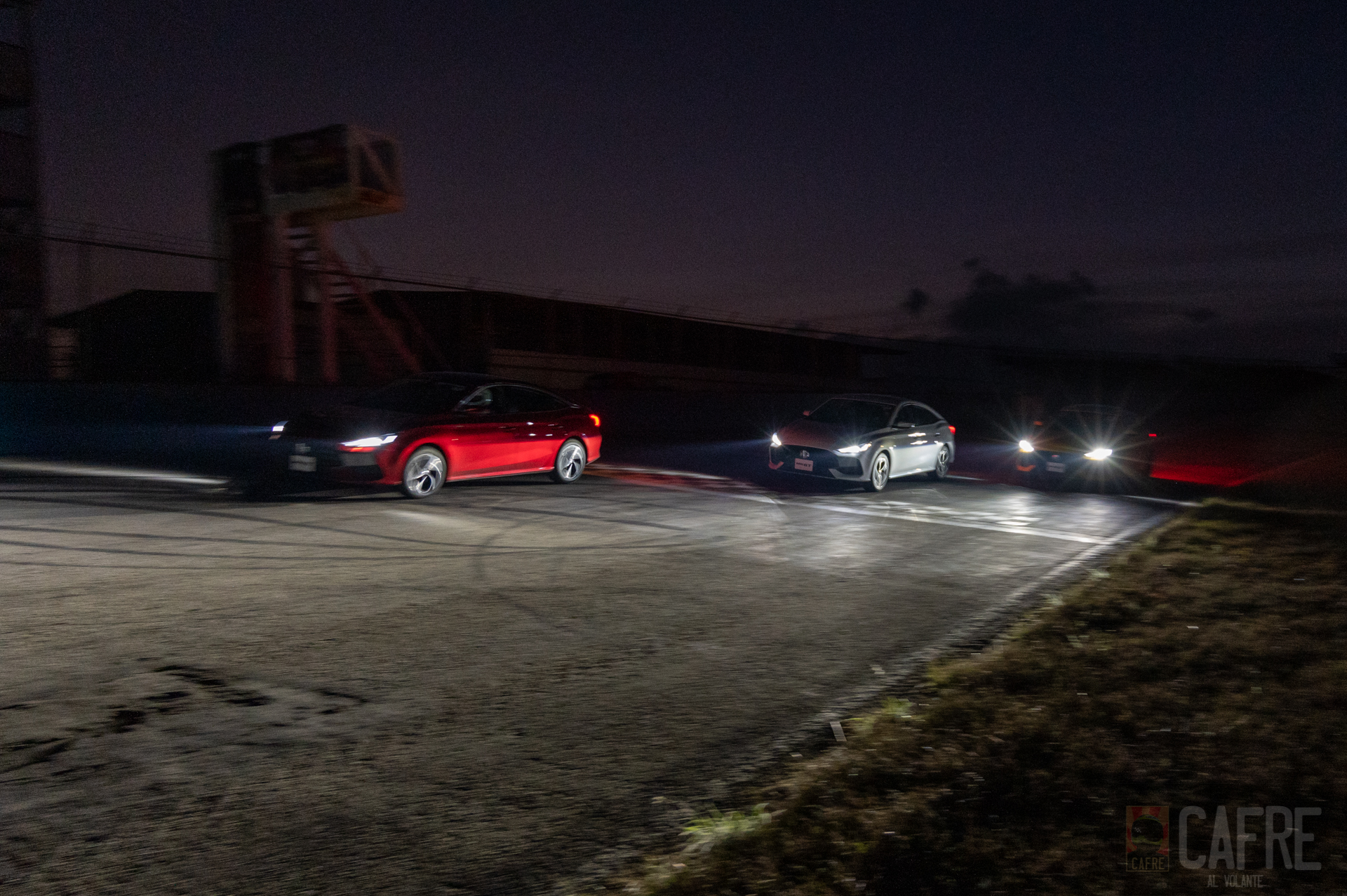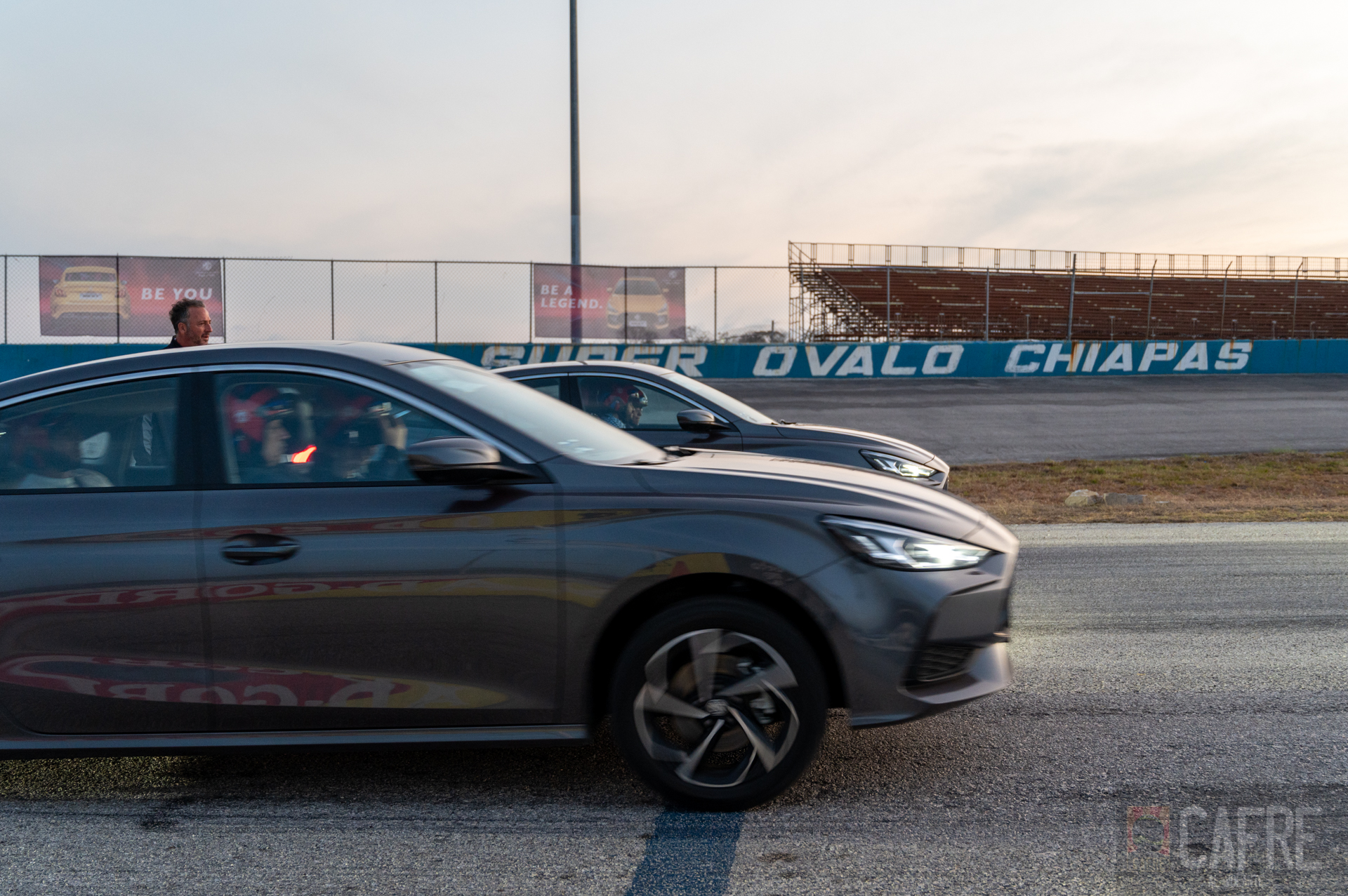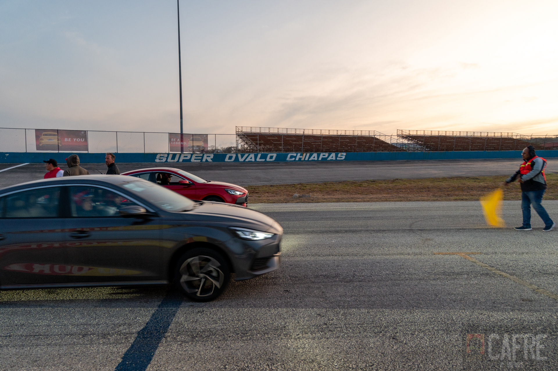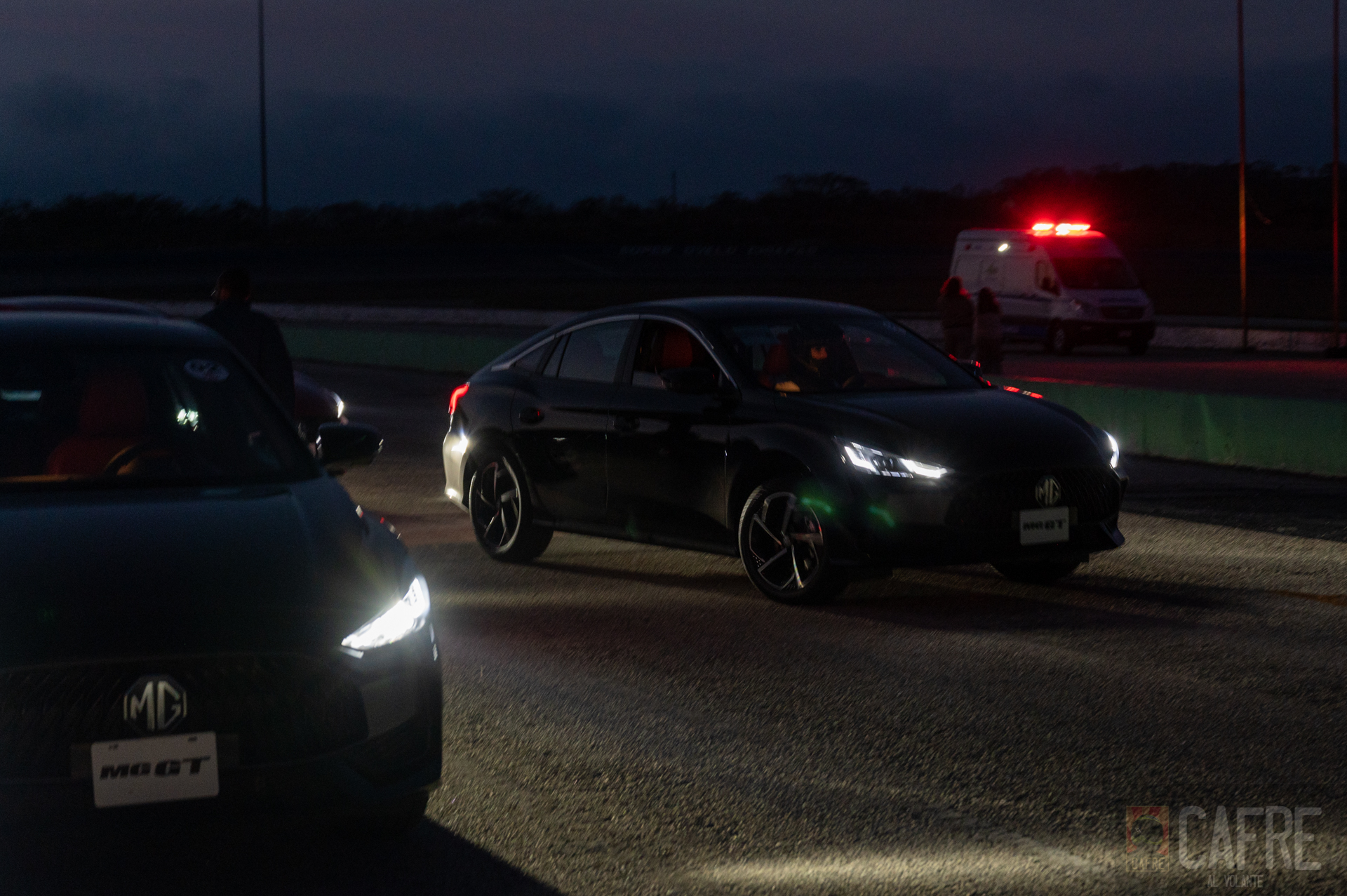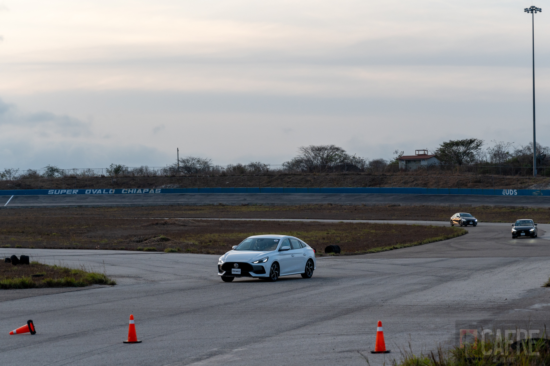Para poner a prueba toda la capacidad deportiva del MG GT, llegamos al Super Óvalo de Chiapas, MG nos tenía preparadas dos actividades en esta pista, la primera fue una vuelta en un circuito interno donde pudimos exigirle a la dirección, suspensión y frenos principalmente. Algo que nos sorprendió mientras buscábamos hacer una vuelta perfecta fue lo controlado que se sentía al entrar rápido a una curva, eso sí, había momentos en donde se manifestaban las asistencias en el tablero (principalmente el control de estabilidad). La segunda actividad fueron los arrancones de 1/8 de milla, aquí nos enseñaron un método para poder simular un launch control, consistía pisar el freno con el pie izquierdo y acelerar el motor a las 2,300 revoluciones, para que al soltar el pedal tuviéramos el turbo trabajando y así disponer de todo el torque que este generaba. Como última actividad en el autódromo había la posibilidad de dar vueltas rápidas en el óvalo, pero con el instructor conduciendo, aquí aprovechamos para tomar fotos mientras los autos iban en el peralte.
