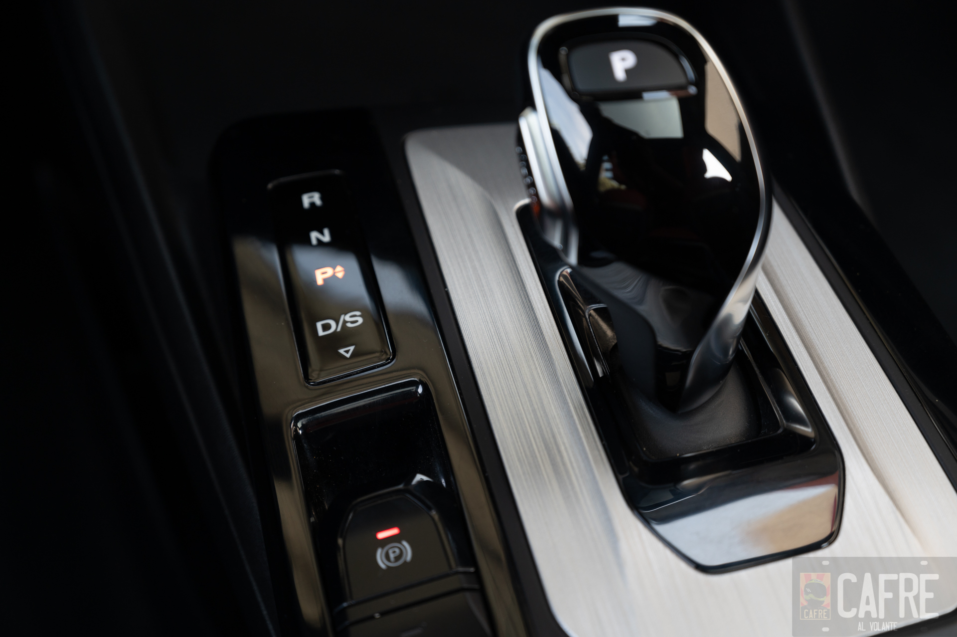 También en él encontraremos las paletas de cambios para la transmisión en caso de que quieras conducir de una manera más “manual”. La palanca de velocidades es electrónica por lo cual sólo basta con oprimir un botón para poner Parking o mover hacia arriba o hacia abajo para la reversa o drive/sport, algo que debes considerar es que no puedes reposar la mano en ella porque es tan sensible que puede ponerse en Neutral y pasar vergüenzas.