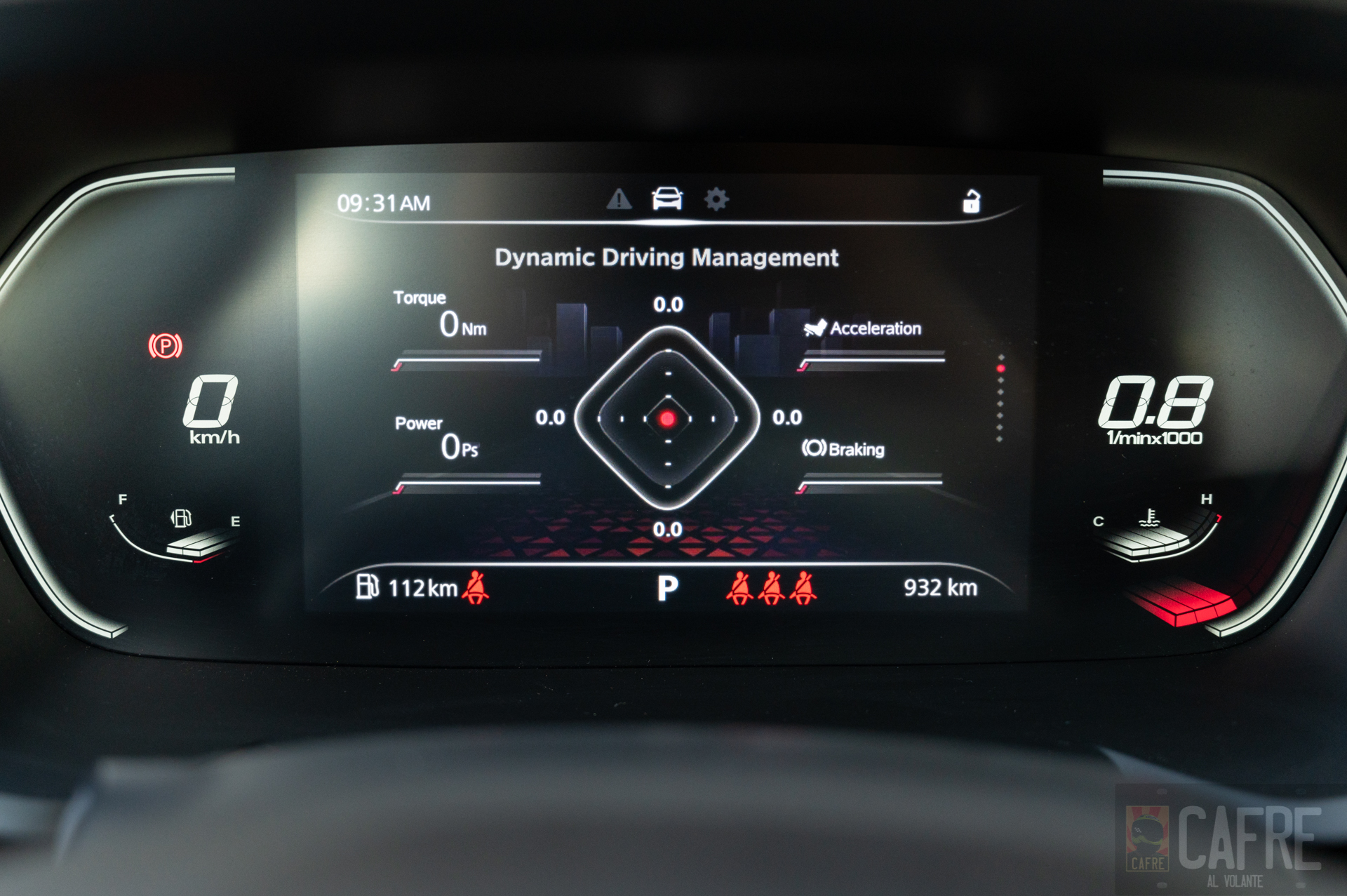 También utilizamos el modo Sport para tener mejor respuesta al momento de pisar el acelerador, al querer manejar realizando los cambios de manera manual, no resultó ser tan práctico como uno quisiera, porque al tener un tacómetro digital no sabíamos los límites de revoluciones del motor (la línea roja) haciendo un poco complicado conducir de una manera deportiva.