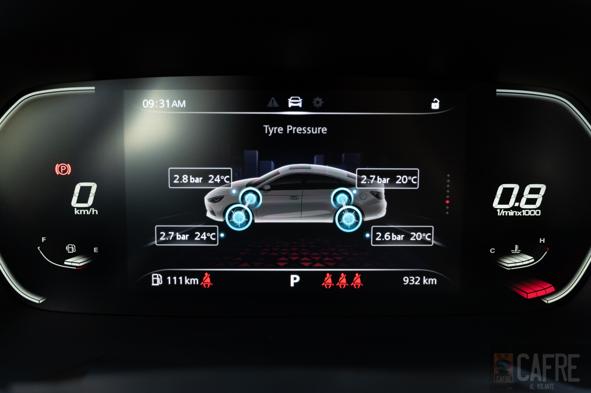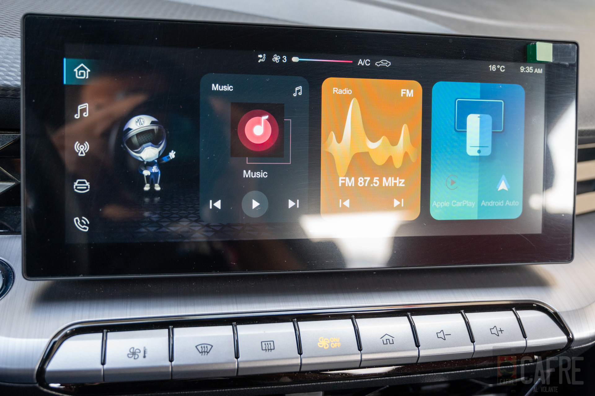 Con el equipamiento, sentiremos que estamos completos en tecnología, para el infoentretenimiento tendremos una pantalla táctil de 10.2 pulgadas Android Auto y Apple Carplay, en ella también podemos ajustar los controles del aire acondicionado entre otras funciones como reproducir las cámaras que se incorporan en el auto. Otra pantalla es la del panel de instrumentos que nos ofrecerá información como presión de los neumáticos, rendimiento de combustible, pero al tratarse de un deportivo, también tendremos medidores de fuerzas G y medición de aceleración. Para la conectividad, tendremos puertos USB al frente y también para los asientos traseros.