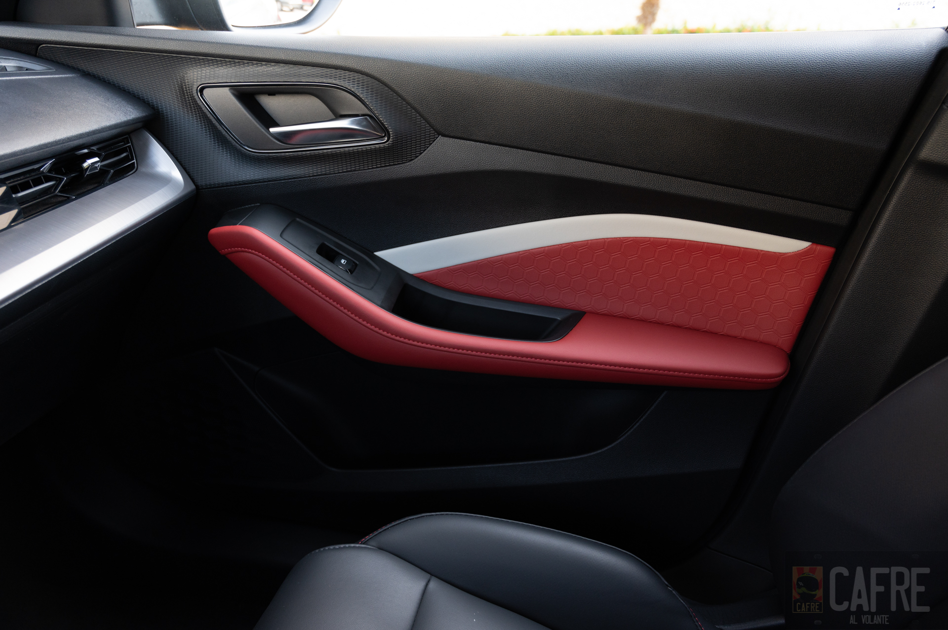 Ciertos detalles que encontramos en este auto es que el volante no tiene ajuste telescópico, por lo que reduce tener la posición de manejo ideal para cierto tipo de personas (como en mi caso). Los interiores dan una buena apariencia en diseño, pero los plásticos localizados en la parte superior de las puertas puertas y el tablero hubieran dado una mejor sensación con otro tipo de acabado, aunque no es grave tener estos materiales ya que debemos considerar que el objetivo de este auto es ser ligero y en eso lo lograron.