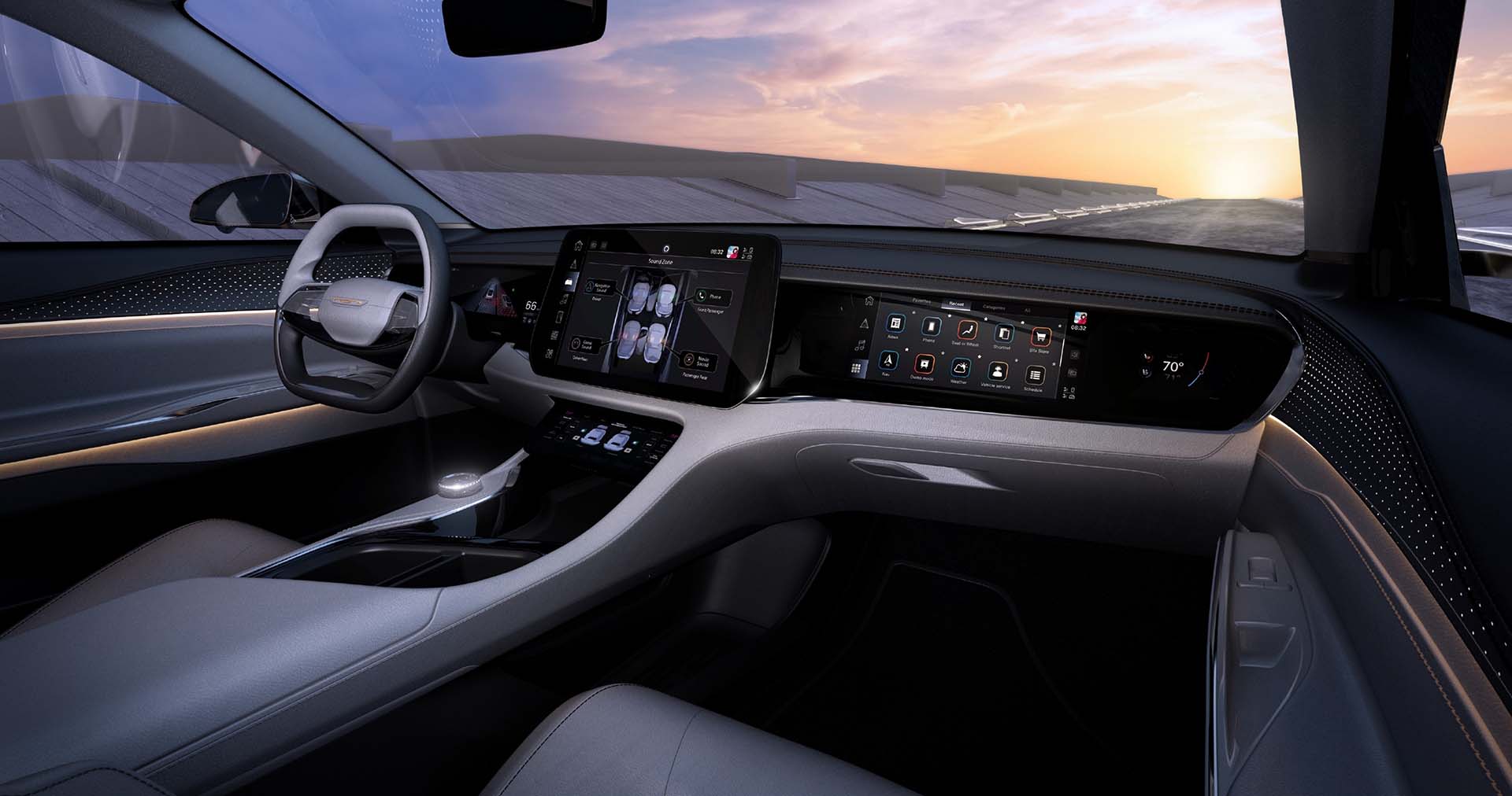 La tecnología se integra a la perfección en el interior en forma de esculturas de vidrio oscuro. El área de control central integra controles de clima individualizados cerca de las ranuras de aire en forma de C. Las texturas cristalizadas en todo el vehículo agregan una sensación de precisión, brindan una transición integrada desde el exterior y se alinean con el diseño interior avanzado, resaltado por un refinamiento superior.