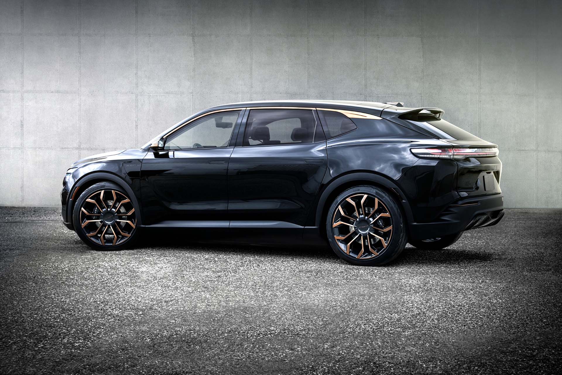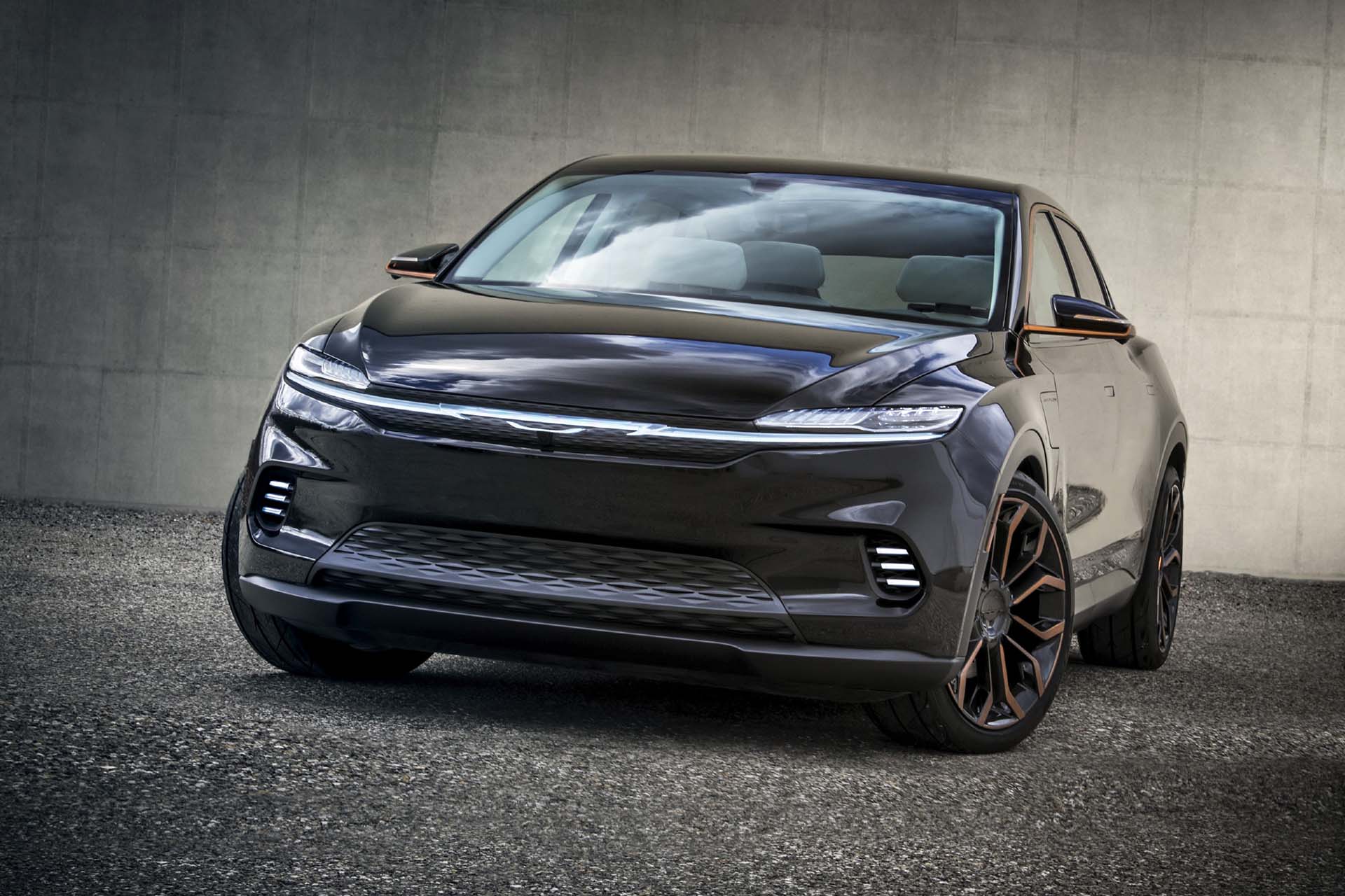 El Chrysler Airflow Graphite Concept presenta un nuevo exterior Galaxy Black y detalles en el interior y el exterior en Cyprus Copper para resaltar una nueva personalidad elegante y refinada para el debut oficial mundial del Airflow Concept en el salón del automóvil.