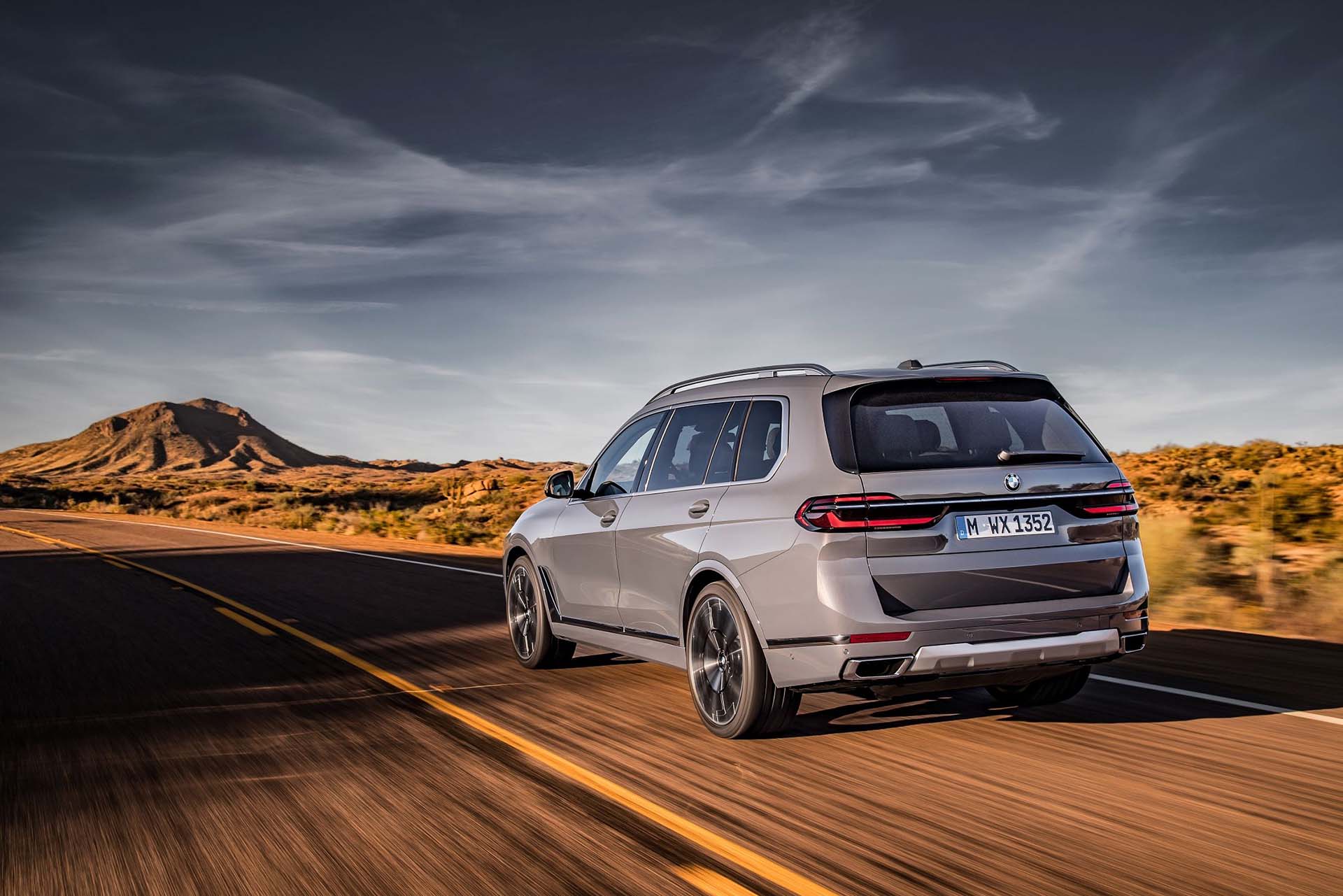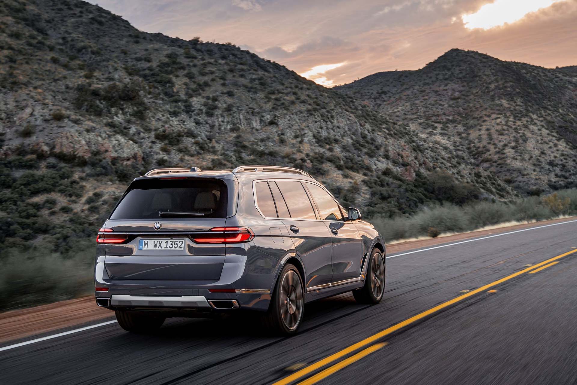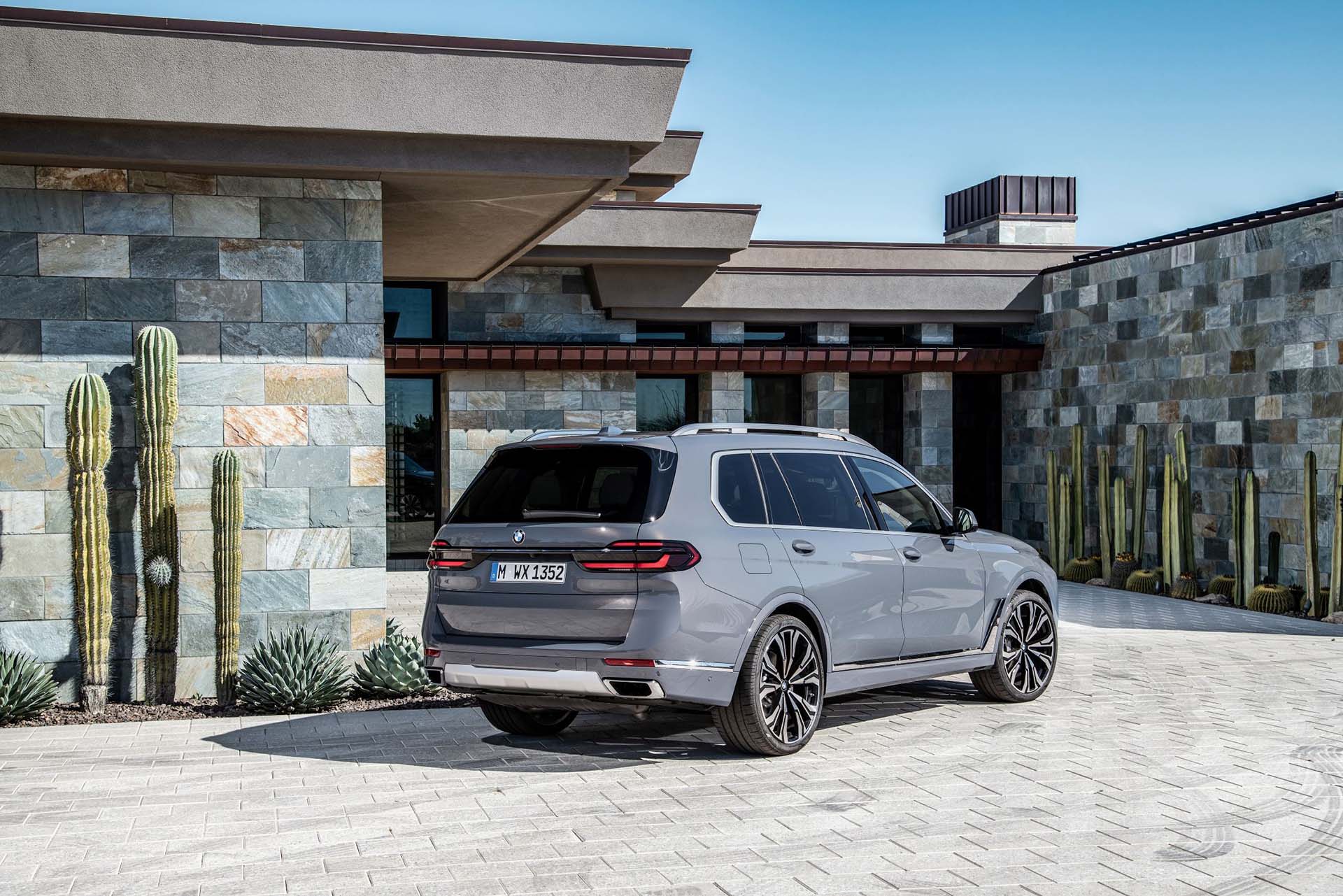 En la parte trasera, se acentúa el estilo progresivo de las unidades de luz extremadamente delgadas, que ahora tienen esculturas tridimensionales. La elegante barra cromada que conecta las unidades de luces traseras en el nuevo BMW X7 está encerrada dentro de una exquisita cubierta de vidrio.