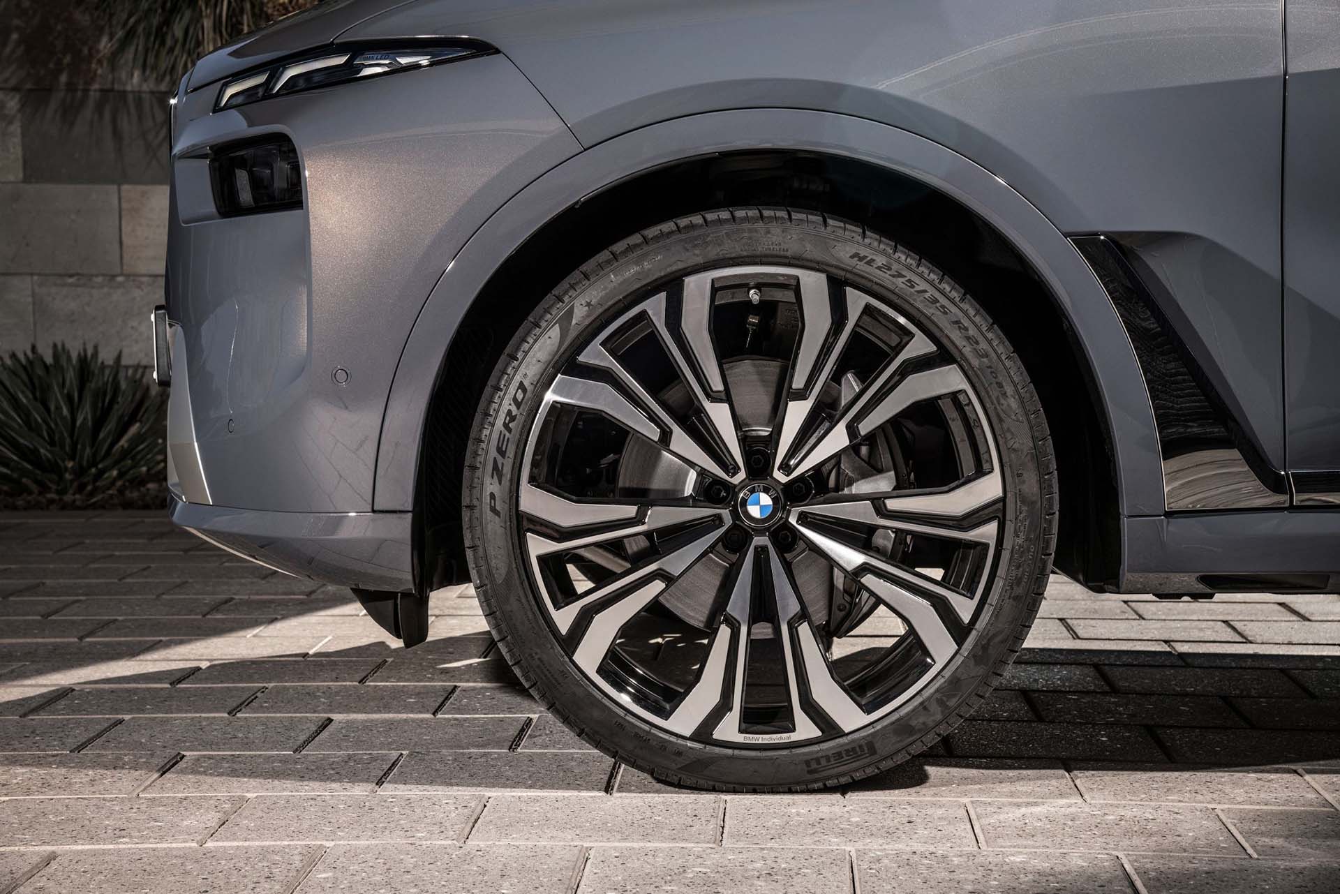 El paquete M Sport opcional de nuevo diseño destaca aún más las propiedades dinámicas de conducción del BMW X7. Las características de diseño específicas de M para el exterior y el interior también enfatizan claramente los atributos de desempeño del BMW X7 M60i xDrive. El acabado de pintura metálica Marina Bay Blue se puede pedir exclusivamente para el modelo BMW M. Otra nueva incorporación a la gama de colores exteriores es Sparkling Copper Grey metálico. Los rines de aleación ligera de 20 pulgadas vienen de serie en el nuevo BMW X7. El modelo tope de gama y los vehículos especificados con el paquete M Sport vienen con rines de aleación ligera M de 21 pulgadas. Los rines de aleación ligera opcionales de 23 pulgadas están disponibles de fábrica por primera vez para un modelo BMW.