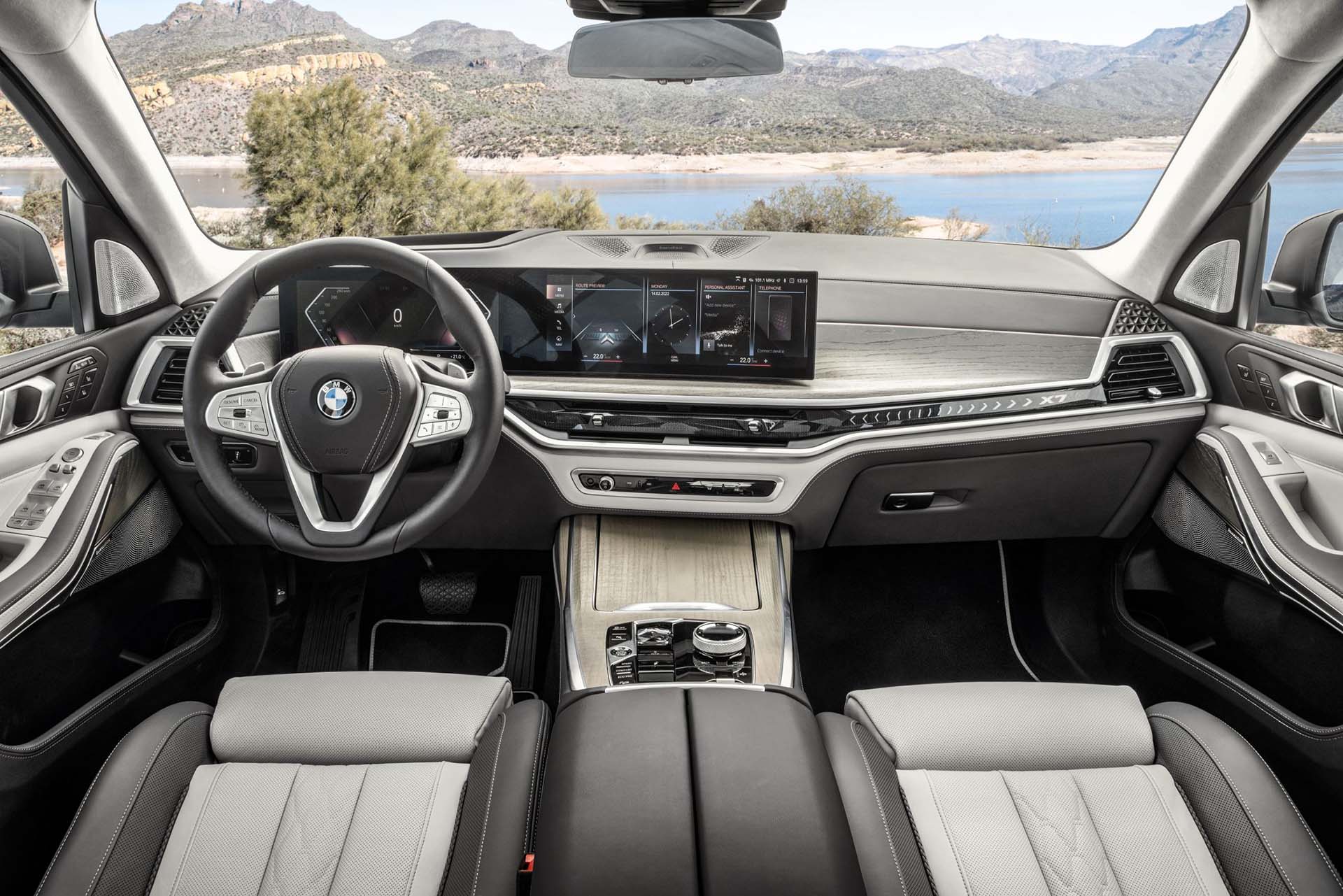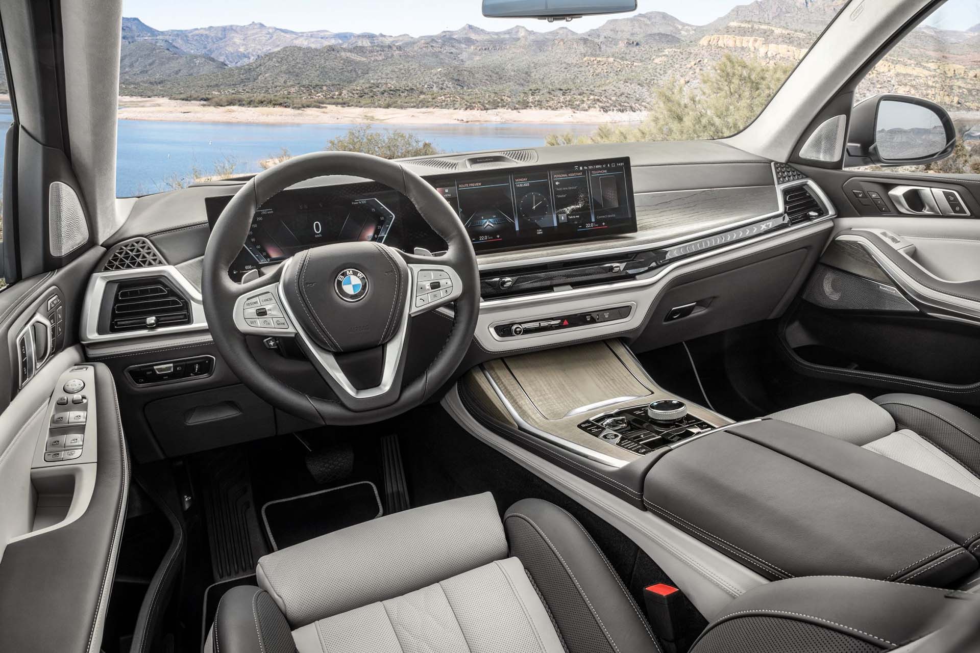 La gama aún más ampliada de equipamiento de serie para el nuevo BMW X7 va más allá para mejorar la comodidad de las personas a bordo y maximizar su bienestar. Además del climatizador automático de cuatro zonas, el techo solar panorámico de cristal y el sistema de alta fidelidad, ahora también incluye los asientos de confort para el conductor y el pasajero delantero, un volante deportivo de cuero con levas de cambio y una nueva bandeja para la carga inalámbrica de teléfonos móviles compatibles. Los aspectos más destacados de la lista de opciones incluyen el techo solar panorámico de cristal Sky Lounge (iluminado por unidades LED), el sistema Bowers & Wilkins Diamond Surround Sound y el sistema Travel & Comfort de nuevo diseño. También se ofrecen ventilación activa de los asientos y una función de masaje para el conductor y el pasajero delantero. Si se especifica el nuevo Paquete Confort, los asientos de la segunda y tercera fila también se pueden calentar, al igual que el volante y los reposabrazos para el conductor y el pasajero delantero.