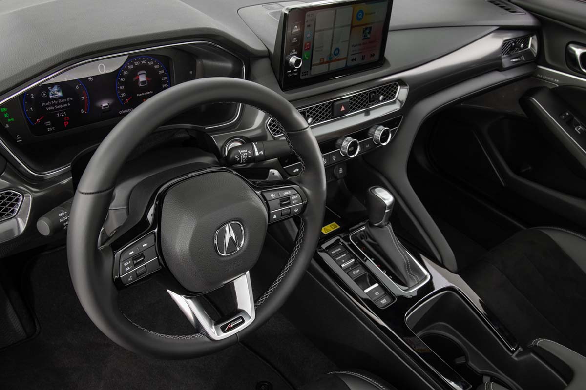 En el nuevo Acura Integra 2023 nos vemos envueltos por un ambiente tecnológico y deportivo en su interior, que incluye una pantalla digital Acura Precision Cockpit de 10.2 pulgadas, y compatibilidad con Apple CarPlay y Android Auto. Están disponibles un cargador inalámbrico para teléfonos inteligentes, y el galardonado sistema de audio premium ELS STUDIO 3D® con 16 bocinas, adaptado a la medida del entorno auditivo único de Integra. Además de vestiduras de asientos con piel sintética e insertos Alcantara, con costuras y bordes contrastantes.