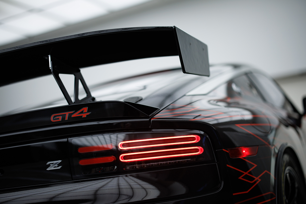 Revelado por primera vez a fines de septiembre, el Nissan Z GT4 especialmente construido para SEMA presenta un diseño que vincula la herencia de las carreras antiguas con el diseño moderno. En el cofre se muestra el número 23, el número exclusivo de Nissan, que se encuentra dentro de un círculo de sol naciente que se remonta al diseño de los vehículos de competencia de los años 70. Además, los nuevos logotipos Z en el panel del cuarto trasero resaltan la interpretación moderna de las insignias originales 240Z y Fairlady Z, todo cubierto por el icónico esquema de color rojo y negro de Nissan y NISMO.