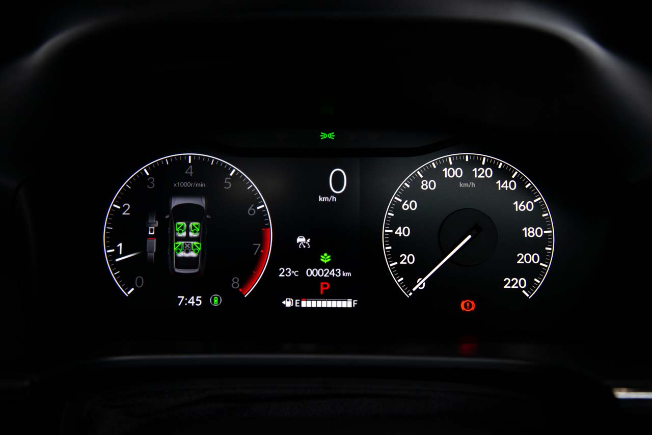 Honda CR-V cuenta con tecnología integrada en la cabina, con enfoque específico al conductor, incluyendo un display digital de instrumentos y pantalla táctil más grande con compatibilidad Apple CarPlay® y Android AutoTM. El panel de instrumentos de 7 pulgadas, cuenta con tacómetro digital y velocímetro físico, pantalla de 7 pulgadas multi-información con funciones seleccionables por el conductor, como ajustes del sistema Honda Sensing®, información del vehículo y más.