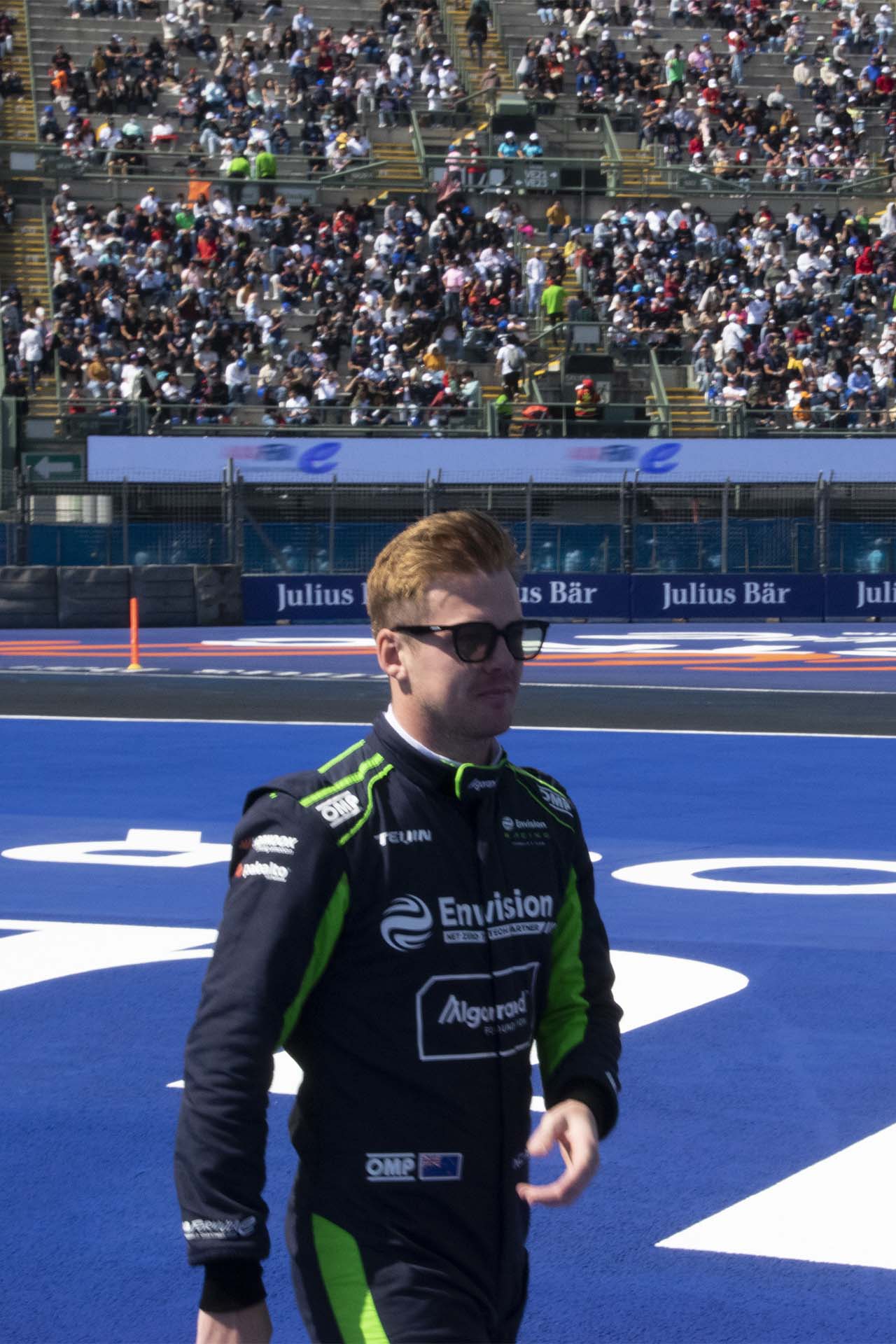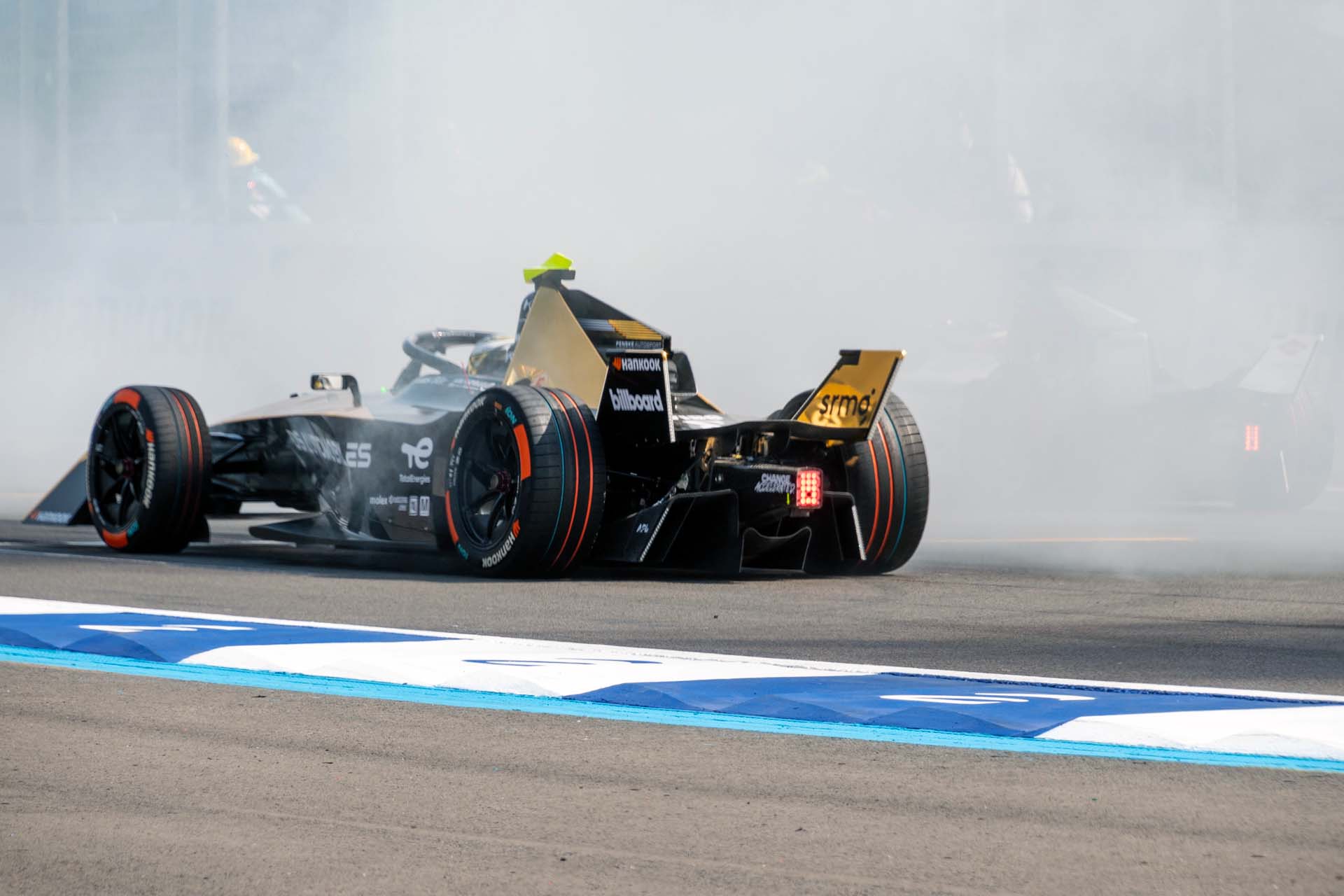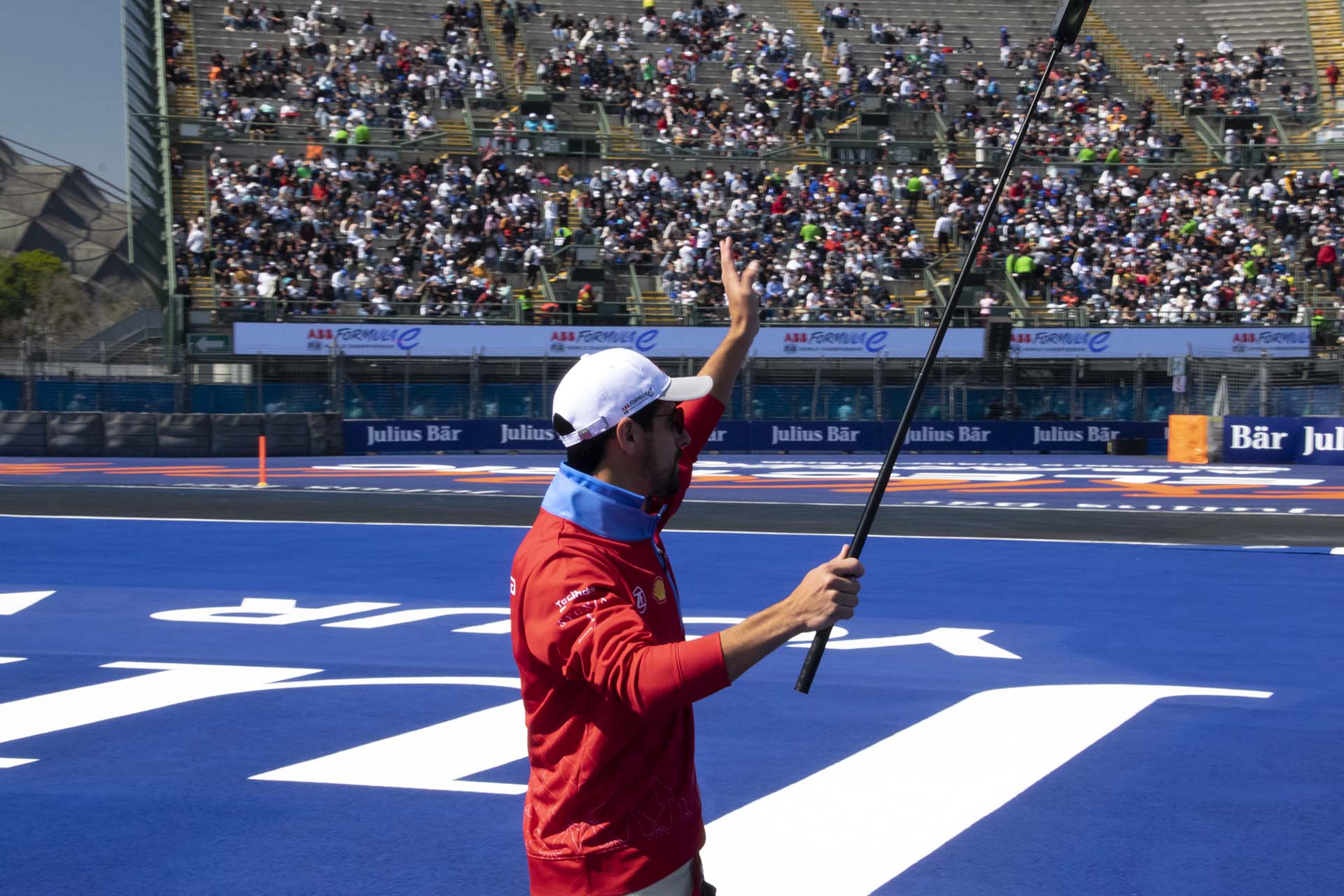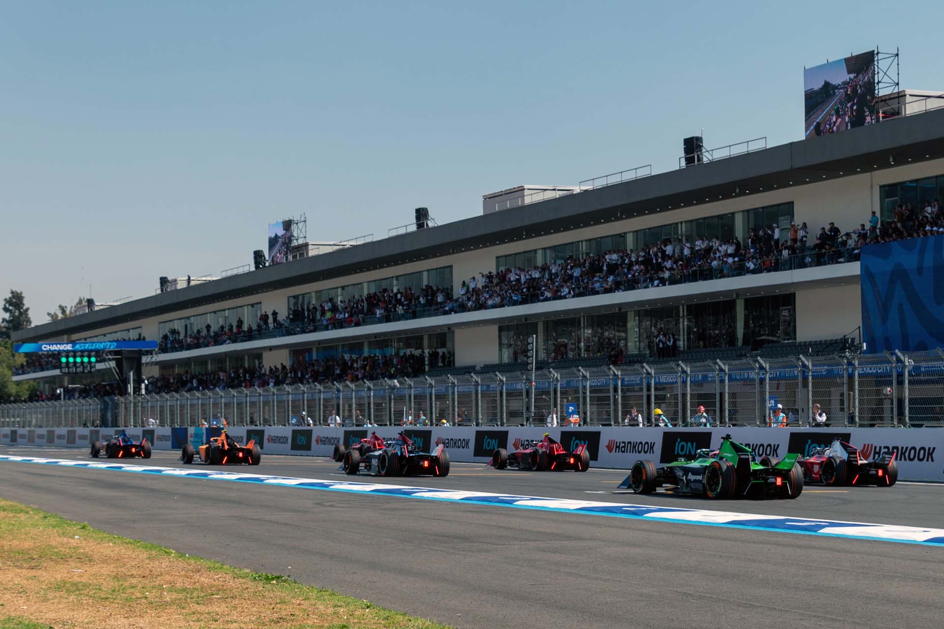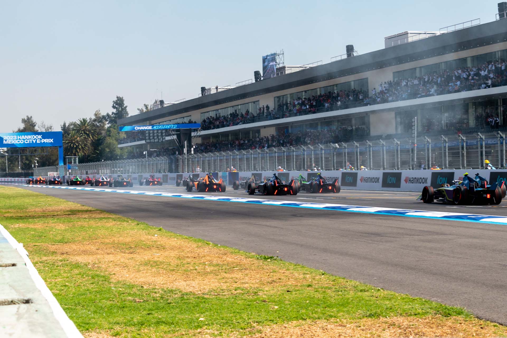 La Formula E se ha caracterizado por ser un serial con un ruido mínimo y eso lo pudimos comprobar estando a un lado de la parrilla ya que lo único que escuchábamos era al público esperando el inicio de la carrera. Fijándose uno en el semáforo, nuestra forma de saber el inicio de Mexico City ePrix, primero con un conteo regresivo, los GEN3 realizan un calentamiento de los neumáticos llenando de humo, ya acomodados en la parrilla, el semáforo vuelve a hacer un conteo para iniciar la carrera.
