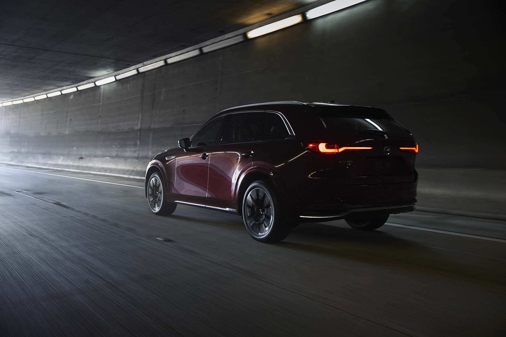 El cuerpo está diseñado para ser elegante con curvas que le dan a Mazda CX-90 reflejos que contrastan con luces y sombras.