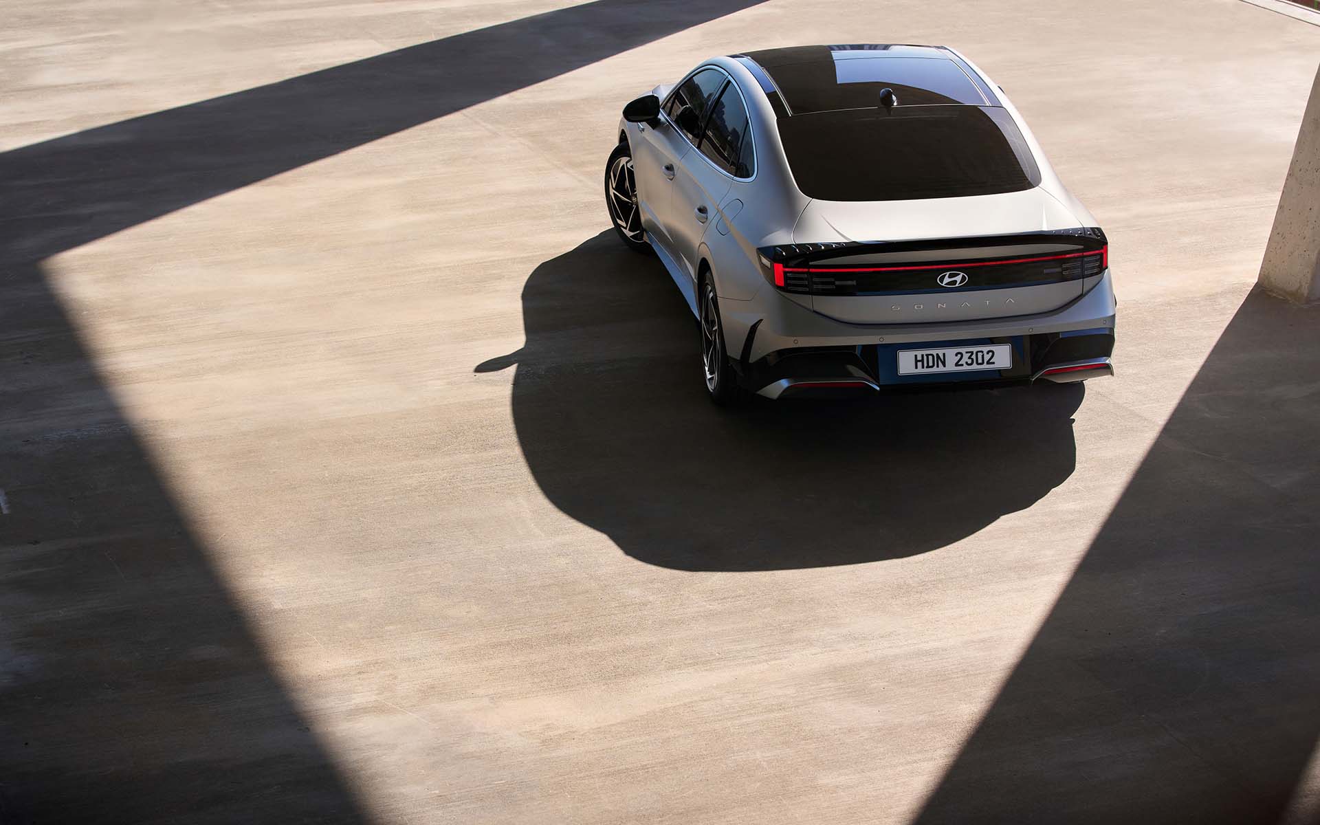 En la parte trasera, las nuevas luces H enfatizan la postura amplia y el carácter de alta tecnología de SONATA. La tapa del maletero en forma de alerón inclinado y la guarnición trasera en forma de silenciador prometen un rendimiento deportivo.