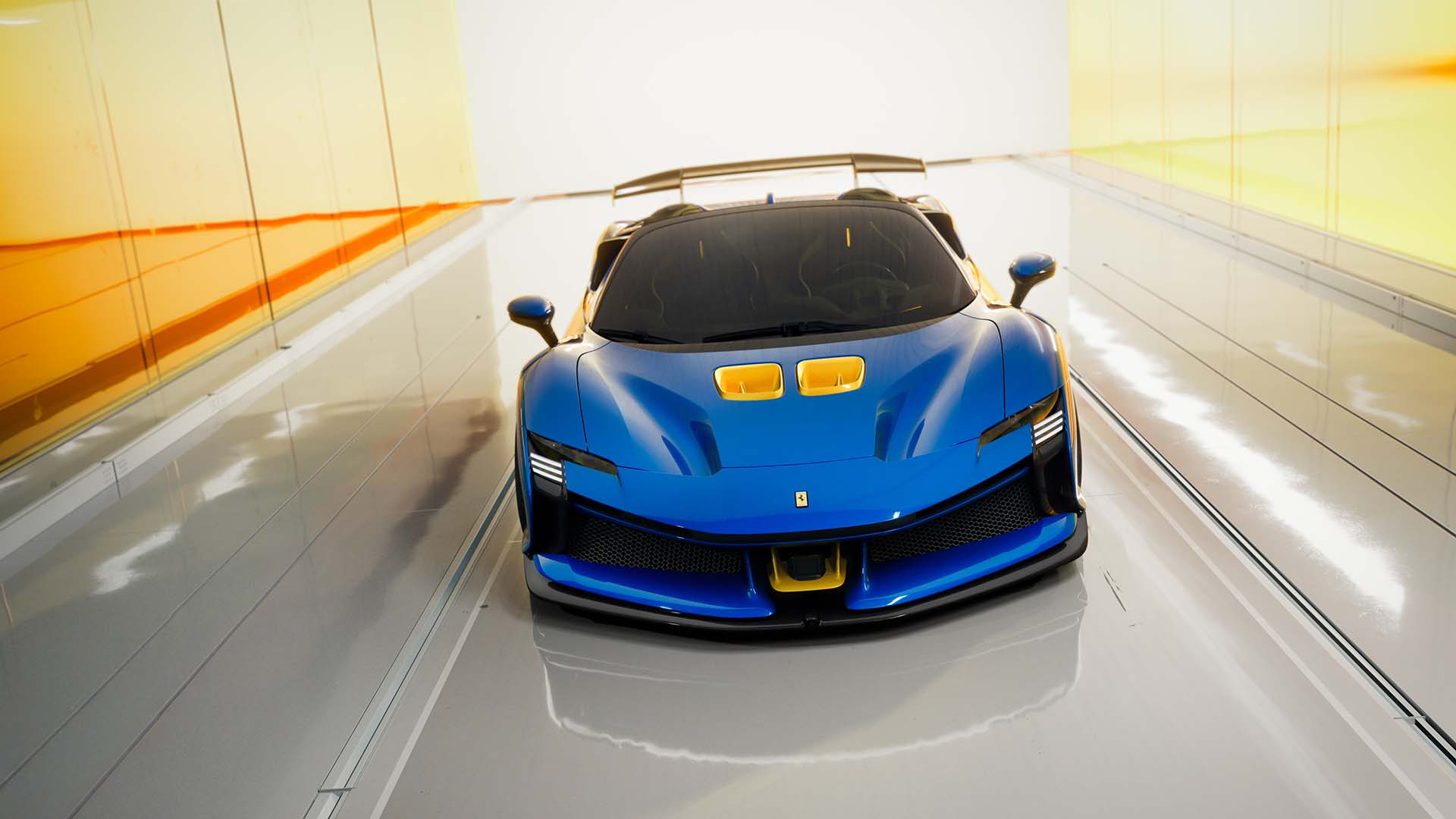 El auto se beneficia de un splitter de dimensiones más generosas que el elemento similar del SF90 Stradale, definido mediante un detallado estudio en el túnel de viento. El elemento genera un flujo de energía bajo el auto que es aprovechado por los bajos rediseñados. El difusor delantero ampliado ayuda a aumentar la carga aerodinámica en más de 45 kg a 250 km/h, trabajando en sinergia con los generadores de vórtices rediseñados. La carga generada por los bajos se estabiliza y se multiplica por las superficies de la carrocería adecuadamente modeladas.