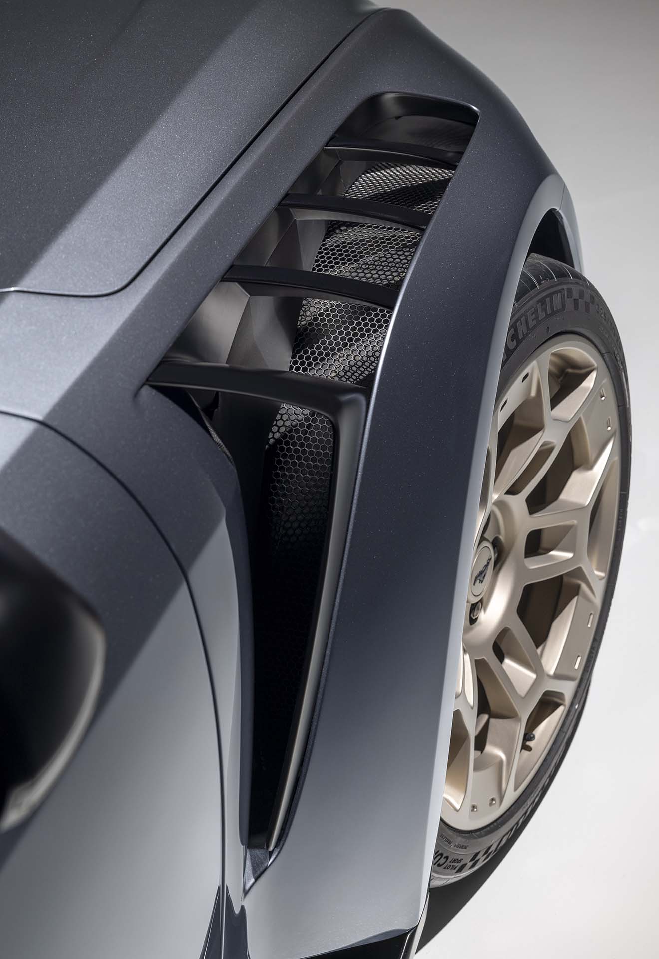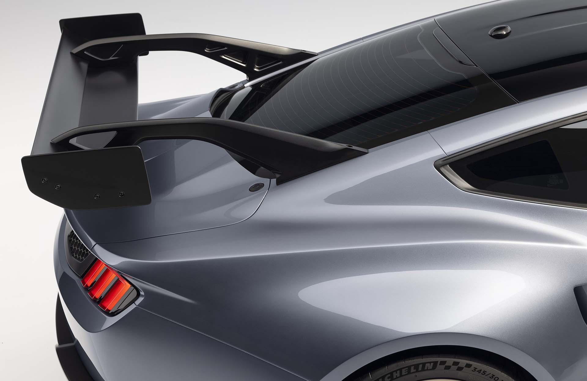 «Nuestro equipo de diseño trabajó en conjunto con el equipo de diseño y el equipo de aerodinámico de Mustang GT3, compartiendo soluciones entre el auto de carreras y el de calle, y viceversa», dijo Anthony Colard, director de diseño de Ford Performance. «Este es un diseño impulsado por la aerodinámica».