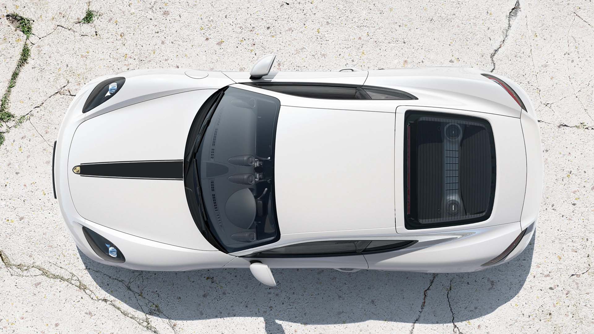 Los clientes pueden elegir entre dos paquetes de contraste sin costo adicional: uno en blanco y el otro en negro. El tono de color fuerte combina con los detalles en Blanco: las letras decorativas «PORSCHE» en el lateral, las franjas decorativas deportivas en el cofre y el anagrama del modelo en la parte trasera. Por su parte, el paquete de contraste en color Negro también ofrece un estilo claramente deportivo,