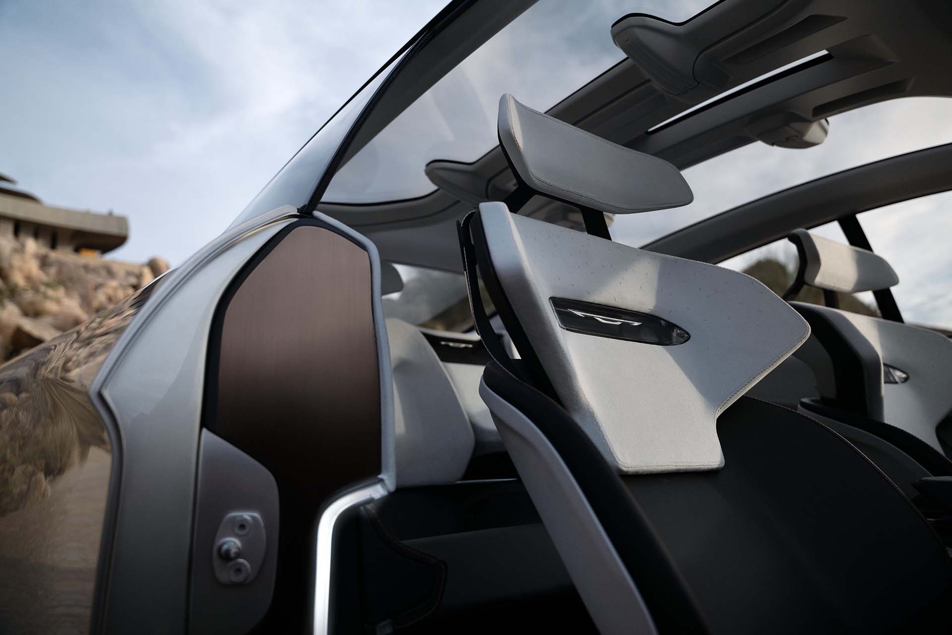 Los materiales interiores se eligieron no sólo por su sostenibilidad, sino también por su compatibilidad con el carácter al aire libre de la cabina, como el ante Solar White con diseño láser, elaborado con un 73 % de botellas de PET, utilizado en las zonas superiores de los asientos y en las puertas. Una costura Mayan Gold brinda una sensación cálida a los asientos, y un tapizado suave sintético sin cuero envuelve los asientos inferiores, con respaldos cubiertos en un tapizado suave sintético Solar White. El tejido de poliéster, 100 % reciclado Mélange Heather, también acentúa el interior.