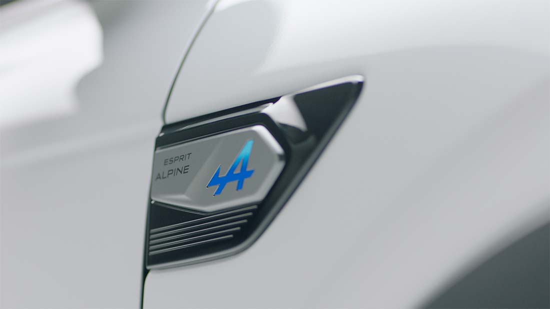 - Insignia lateral con logo Alpine y firma «Esprit Alpine»