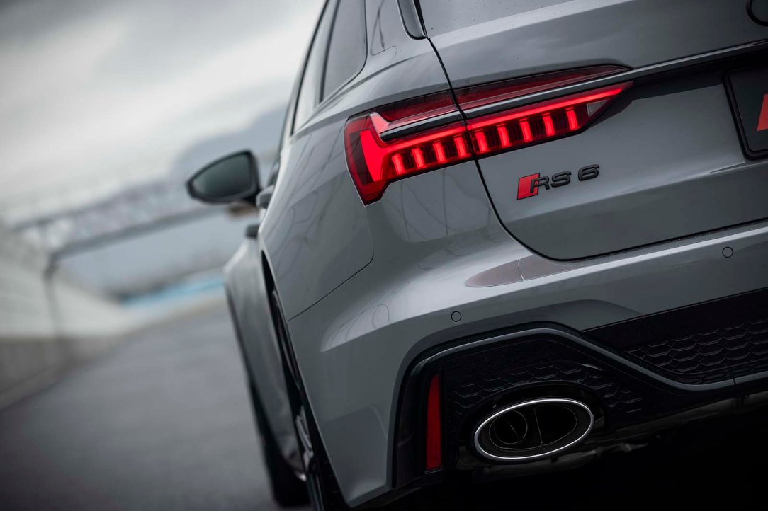 El nuevo RS 6 Avant performance está disponible en un total de 17 colores exteriores + Audi Exclusive. Por primera vez se incluyen el Azul Ascari metalizado o mate y el Plata Rocío mate. Los modelos performance destacan con componentes exteriores RS de serie acabados en gris mate, como las carcasas de los retrovisores exteriores, el spoiler delantero, los faldones laterales delanteros, las inserciones de los umbrales laterales, los raíles del techo, los marcos de las ventanillas laterales y el difusor trasero. También es opcional un paquete estético carbono mate/negro, en el que los raíles del techo y los embellecedores de las ventanillas laterales son de color negro. Los aros Audi y la denominación del modelo están disponibles en cromo o negro, a elección del cliente.