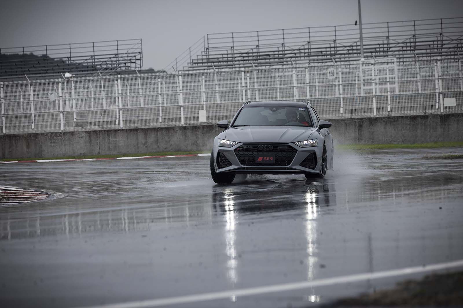 El paquete RS Dynamic forma parte del equipamiento de serie en el RS 6 performance. Incluye el aumento de la limitación de la velocidad máxima a 280 km/h, la dirección dinámica a las cuatro ruedas (con una actualización del software específica del RS que ayuda al conductor con correcciones activas de la dirección en los ejes delantero y trasero) y el diferencial deportivo quattro en el eje trasero.