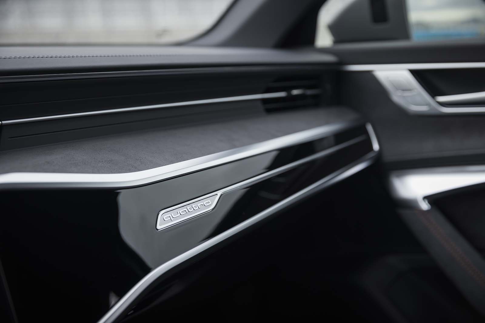La potencia del motor 4.0 TFSI fluye hasta el sistema de tracción total permanente quattro a través de una caja tiptronic de ocho velocidades con tiempos de cambio más rápidos. El diferencial central mecánico distribuye la potencia del motor entre los ejes delantero y trasero en una proporción 40:60. Si se produce deslizamiento, se aplica automáticamente más par al eje con mejor tracción, con un reparto que puede llegar hasta un máximo del 70% al eje delantero y hasta un 85% al trasero. El diferencial central autoblocante es más ligero y compacto, lo que mejora la dinámica de conducción y ofrece un paso por curva notablemente más preciso, reduciendo el subviraje. Como mejora adicional, la respuesta de la dirección es más precisa y los pasajeros se benefician de una experiencia de conducción más ágil.
