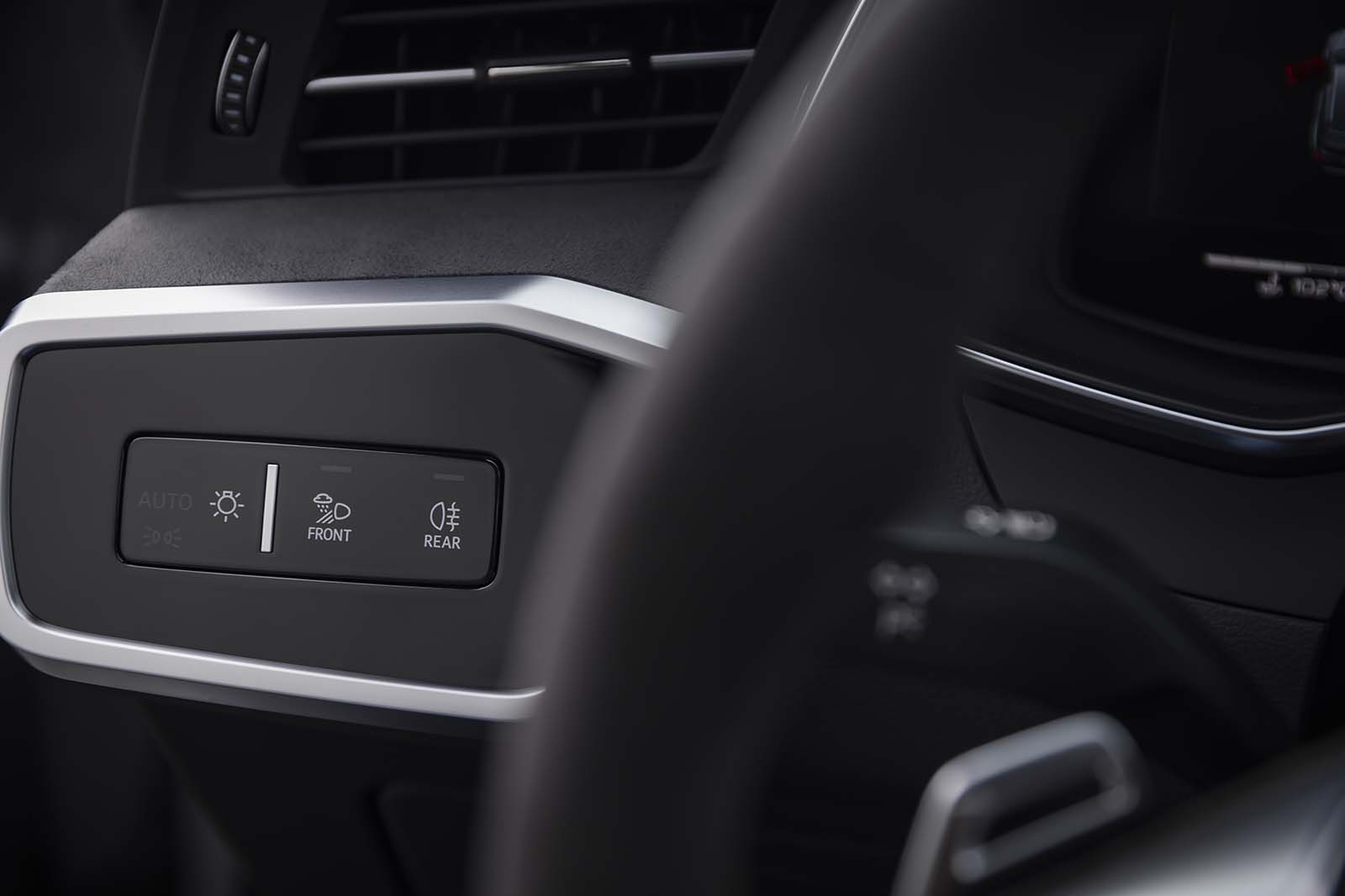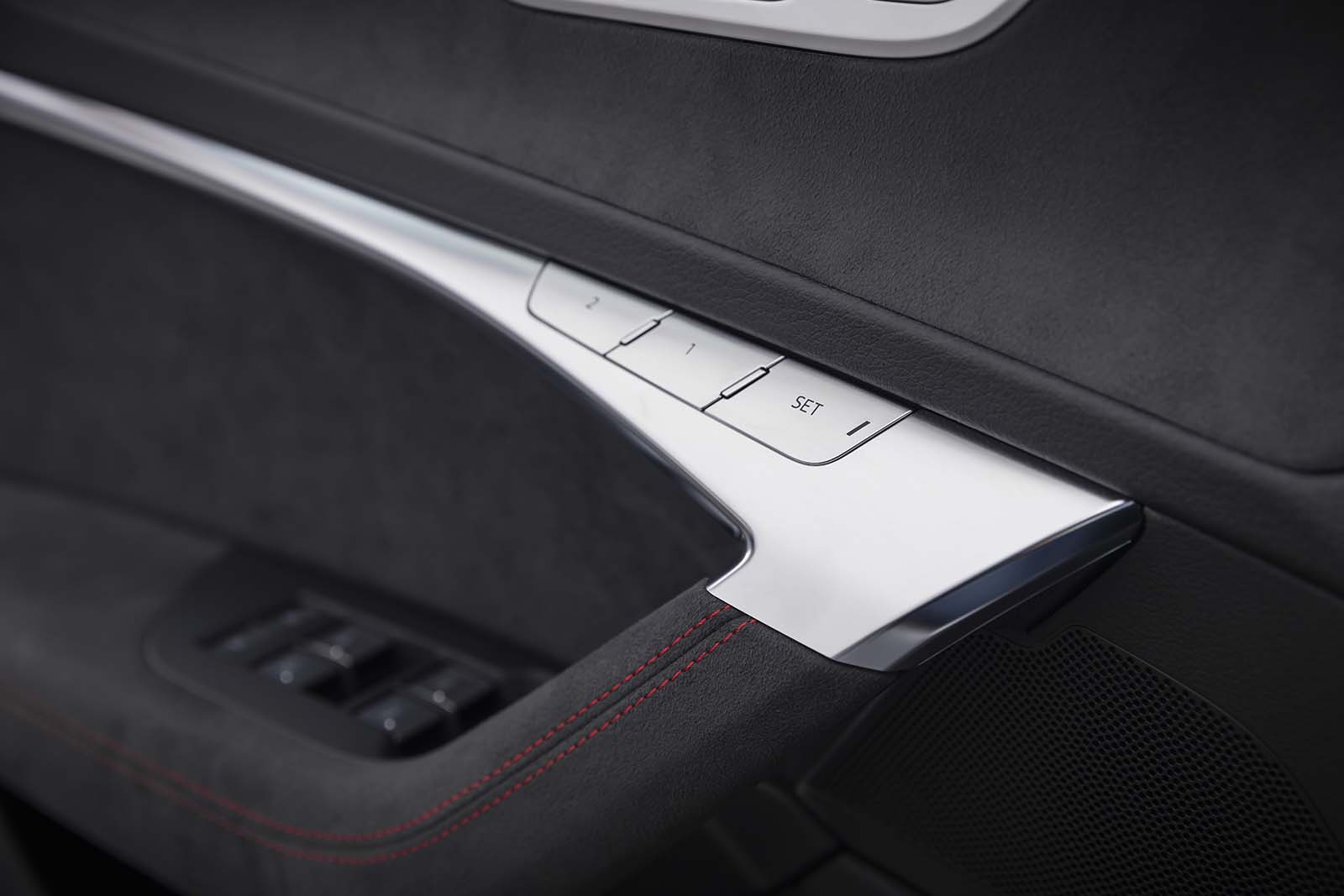Es posible solicitar paquetes de diseño RS en las tres variantes de color disponibles con características adicionales opcionales: inserciones decorativas, reposabrazos de las puertas y reposabrazos central en microfibra Dinamica. Una ventaja añadida de esta variante de equipamiento es el panel central de los asientos con una inserción en gris, rojo o azul, mientras que el color elegido se muestra en los asientos deportivos perforados y los respaldos de los asientos presentan el grabado RS en colores a juego.