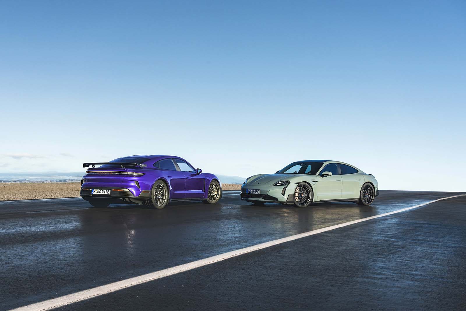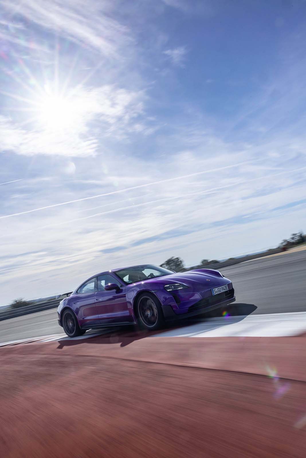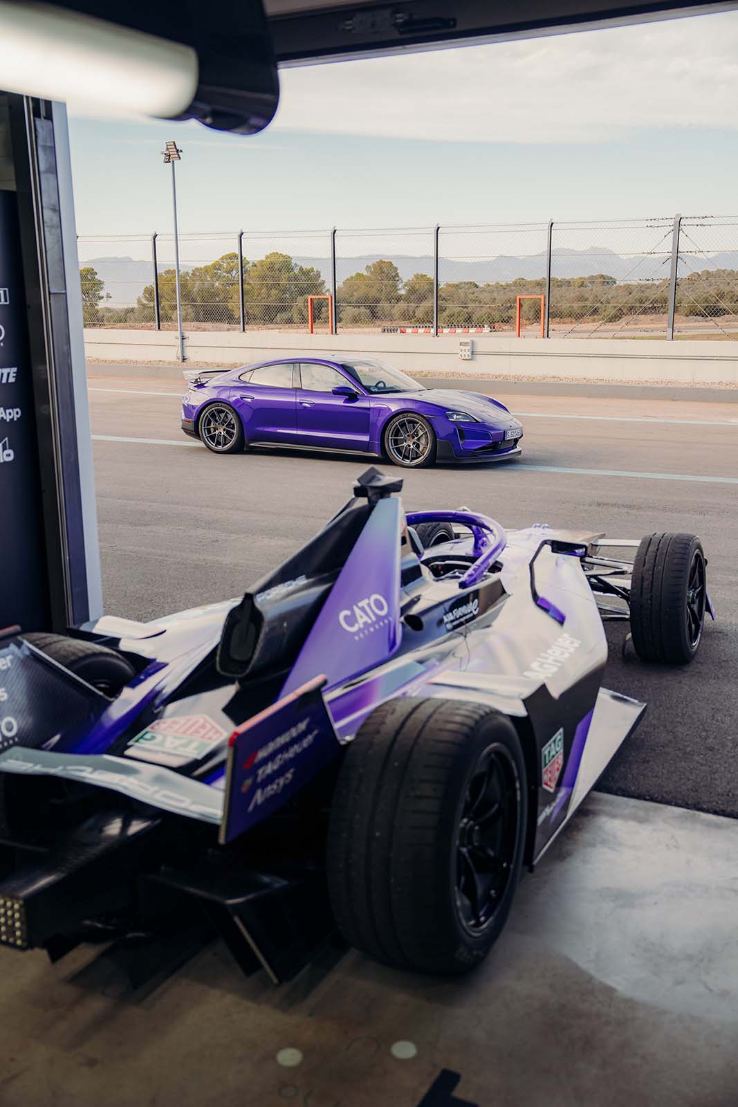 Purple Sky metalizado y verde Shade metalizado: estos son los nuevos colores que dan vida al Porsche 99X Electric. Son los mismos tonos de pintura que Porsche utilizó a principios de año para presentar la nueva punta de lanza de sus deportivos eléctricos para carretera, el Taycan Turbo GT, que es el auto de producción más potente construido por la marca hasta la fecha. Los tonos púrpura y verde sustituyen la tradicional combinación de negro, blanco y rojo, y simbolizan la transferencia de tecnología de las carreras a la producción en serie. El cambio de color también representa la electrificación, el espíritu pionero y la apuesta de Porsche por el campeonato de Fórmula E.
