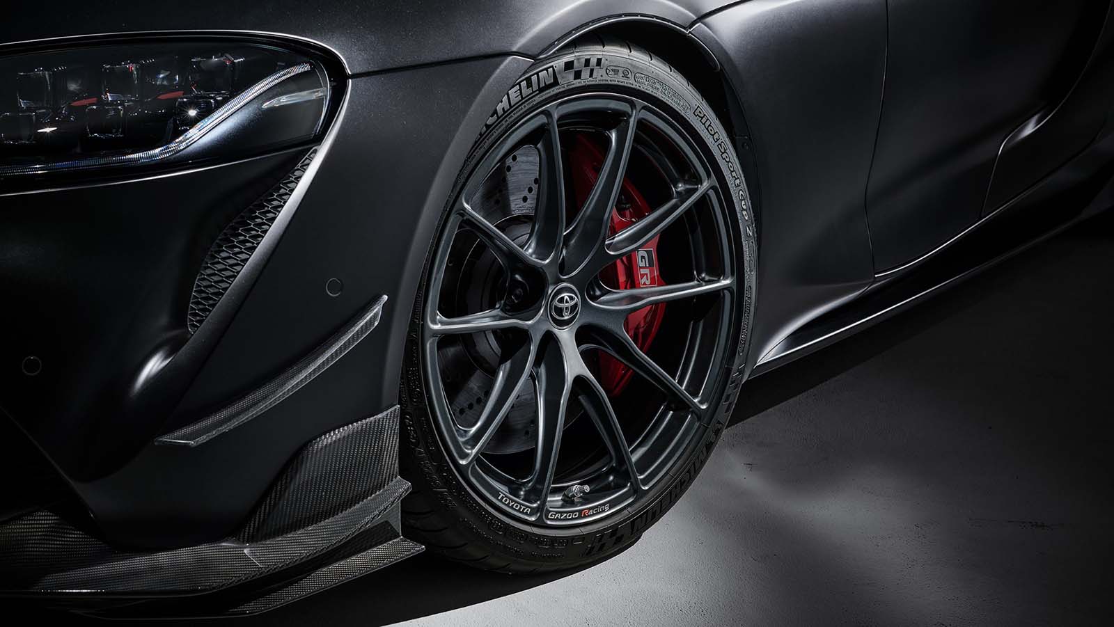 Los neumáticos Michelin Pilot Sport Cup 2, un 10% más anchos que los del Supra estándar, ofrecen mayor estabilidad en curvas y un rendimiento superior. Las llantas ligeras, de 19” al frente y 20” atrás, llevan el distintivo TGR, aportando estilo y funcionalidad.
