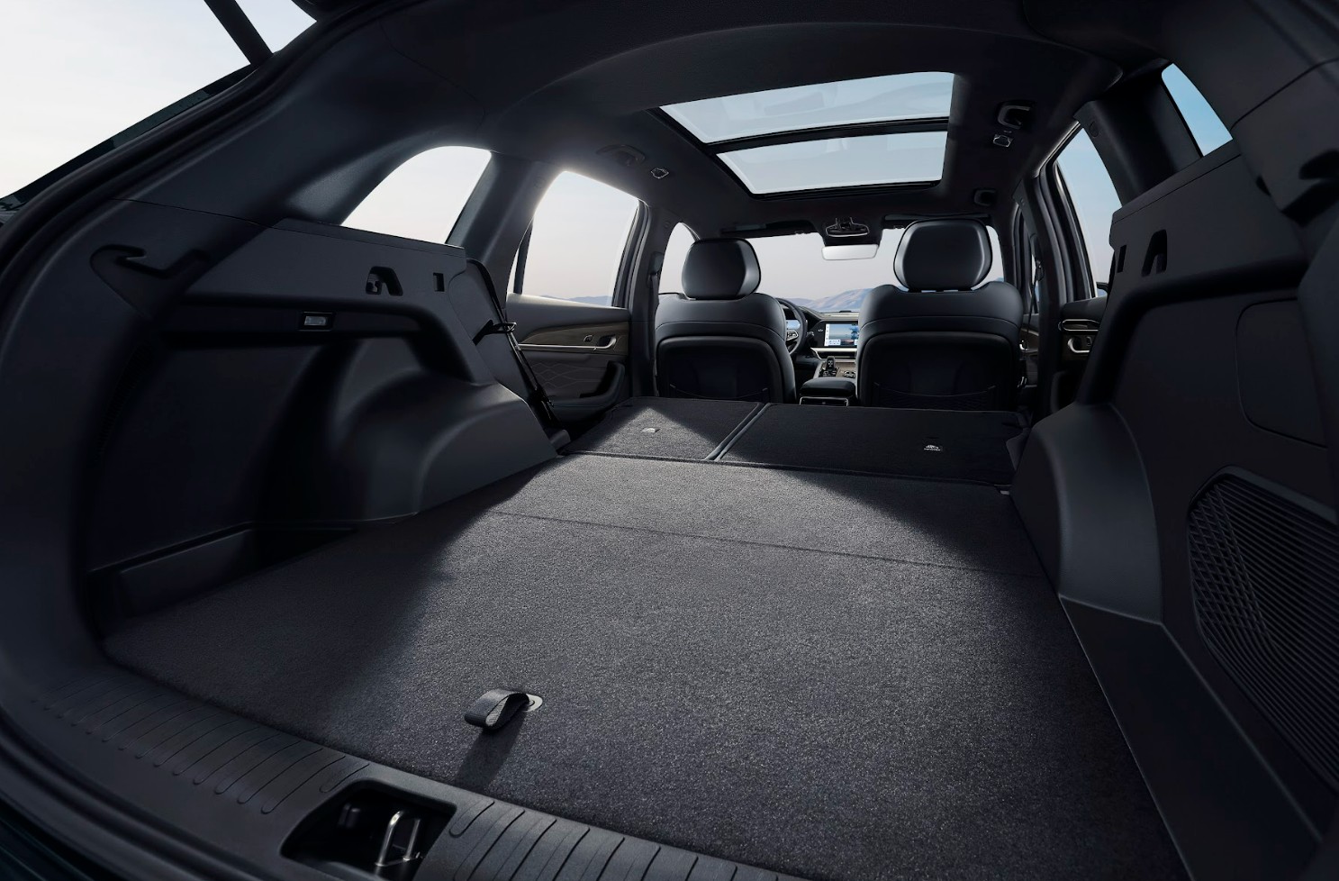 Incorpora tres pantallas de 12.3 pulgadas que abarcan toda la parte frontal de la consola, una destinada al tablero de instrumentos digital, otra hacia el sistema de infoentretenimiento y la última para esparcimiento del copiloto. Ofrece conectividad con teléfonos inteligentes por medio de Bluetooth, CarPlay inalámbrico y función de “mirror screen” con la que puedes visualizar comandos y aplicaciones de tu teléfono. Todo esto es posible gracias a que usa un chip procesador Qualcomm Snapdragon 8155.