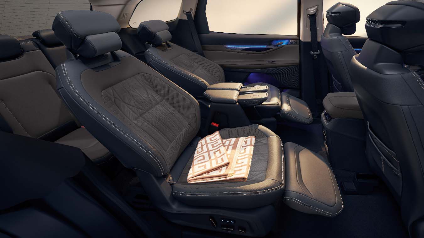El interior ha sido diseñado para que cada ocupante disfrute de una libertad de movimiento excepcional en cada viaje. La tercera fila maximiza la versatilidad del espacio, mientras que los asientos calefactables y ventilados, junto con los reposapiés en la segunda fila, están diseñados para ofrecer una experiencia de viaje premium.