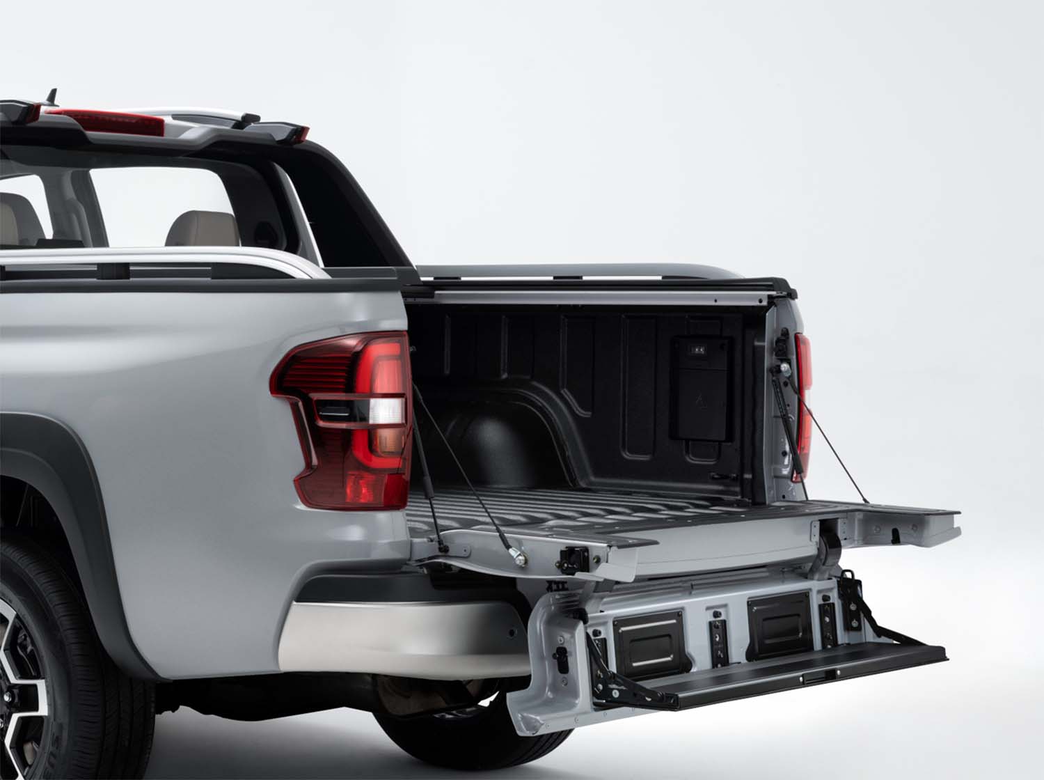 Para el trabajo en campo y el ocio inteligente, la Hunter E añade V2L (Vehicle-to-Load): tomas de corriente en la batea capaces de suministrar energía a electroherramientas, iluminación o equipos de campamento. Es decir, la pickup no solo lleva la carga: lleva la electricidad para que el trabajo no se detenga.