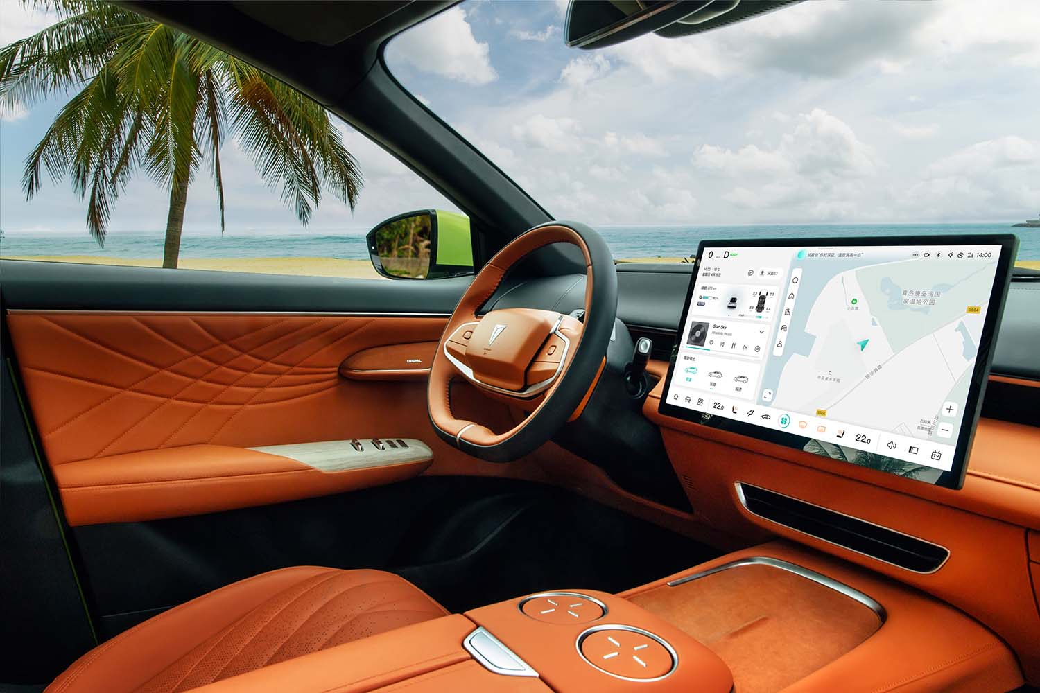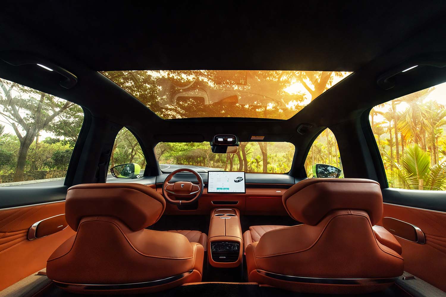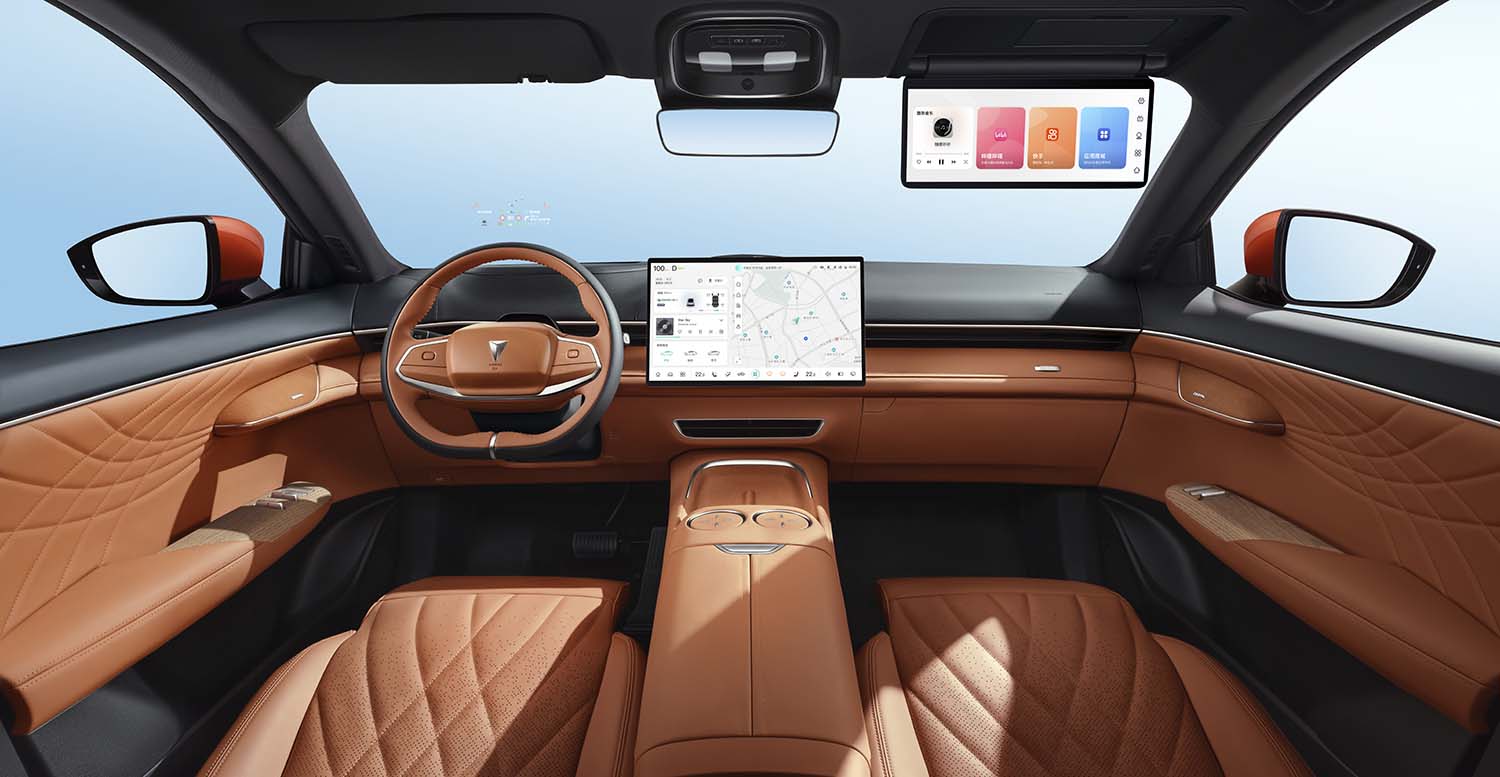 Puertas adentro el S05 apuesta por un interior minimalista y orientado a la experiencia digital. El tablero se organiza alrededor de una pantalla central de 15.4 pulgadas, donde se concentra toda la información del vehículo y parte de los mandos, así como proyección de información al parabrisas (HUD). Las superficies limpias son el común denominador en el habitáculo.