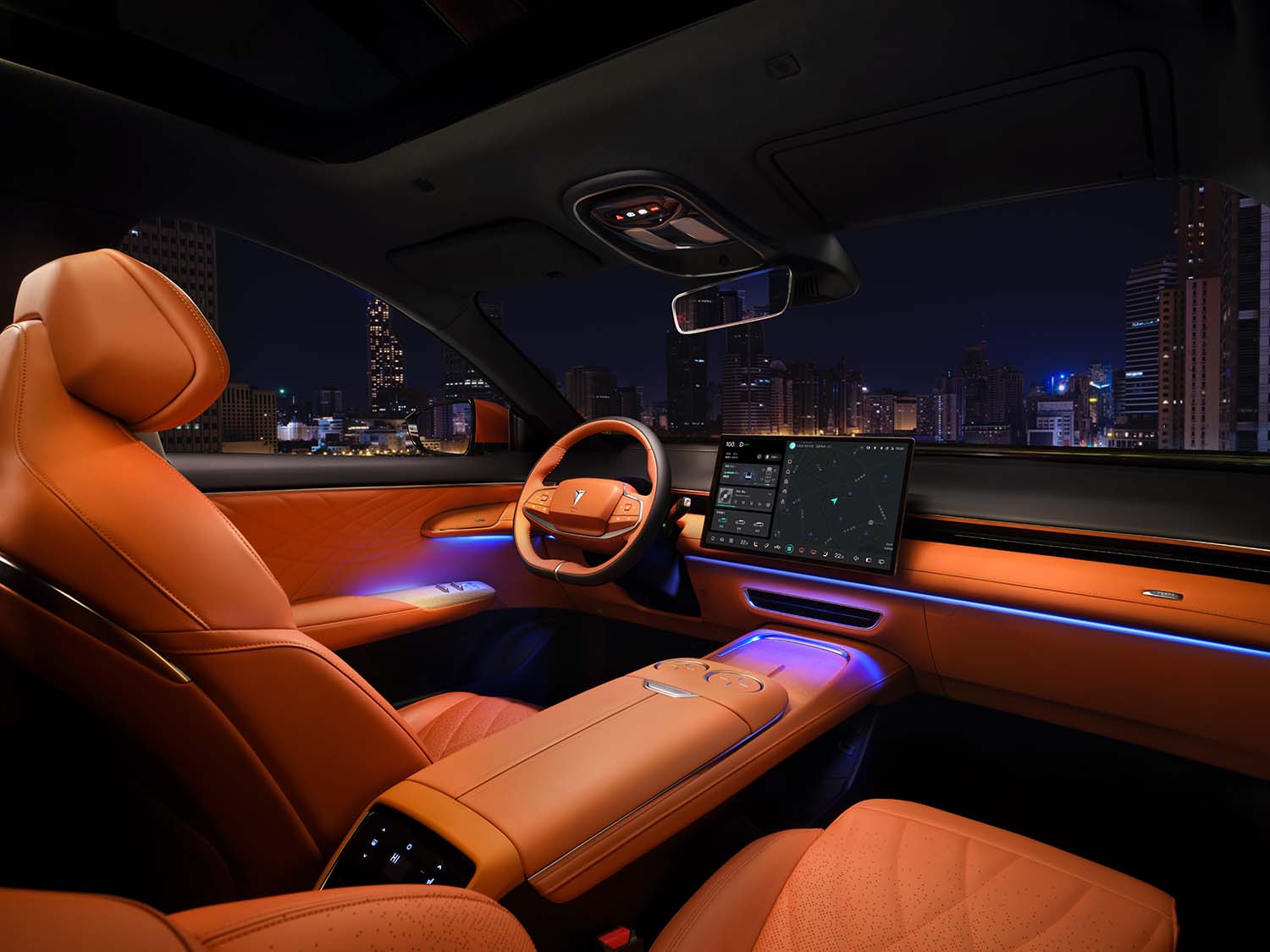 Los asientos, tapizados en materiales premium envuelven al pasajero en comodidad. Su diseño ergonómico asegura soporte en viajes largos, mientras que la amplitud del espacio interior brinda libertad de movimiento. A través de su sistema operativo, el conductor puede personalizar menús, proyectar navegación, ajustar la climatización o activar funciones de asistencia mediante comandos de voz.
