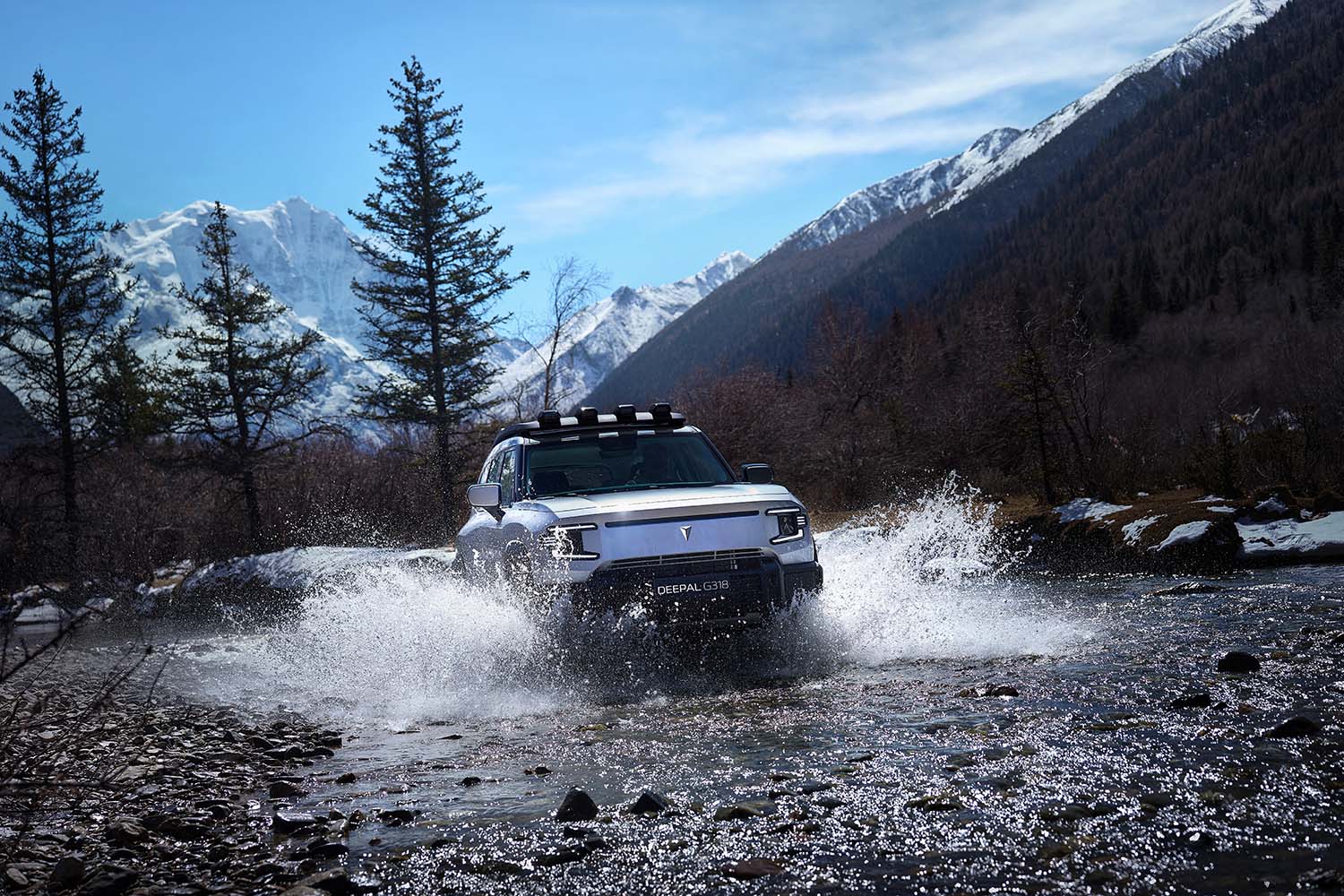 Bajo el cofre, el Deepal G318 resguarda un bloque de 1.5LT que solo sirve para alimentar los dos motores eléctricos que conjunta este todo terreno, uno en el eje delantero y otro en el eje trasero. En conclusión, desarrolla 433 caballos de fuerza y 572 libras pie de torque que se acoplan a una transmisión E-CVT.