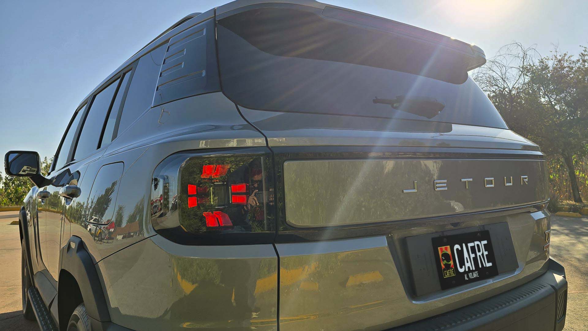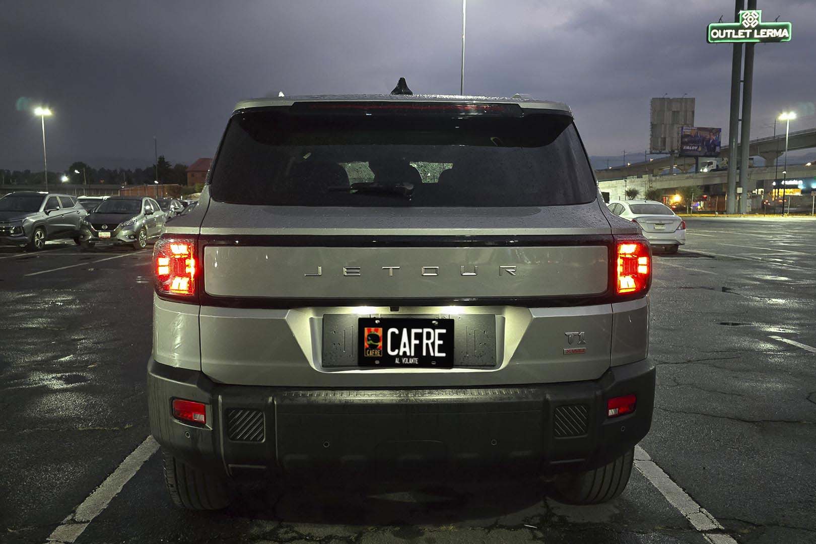 La parte trasera tenemos un diseño muy similar a la parrilla frontal, con el mismo diseño Matrix para las luces traseras. La palabra Jetour se loca al centro de la quinta puerta junto con los emblemas T1 y XWD en la derecha de esta.