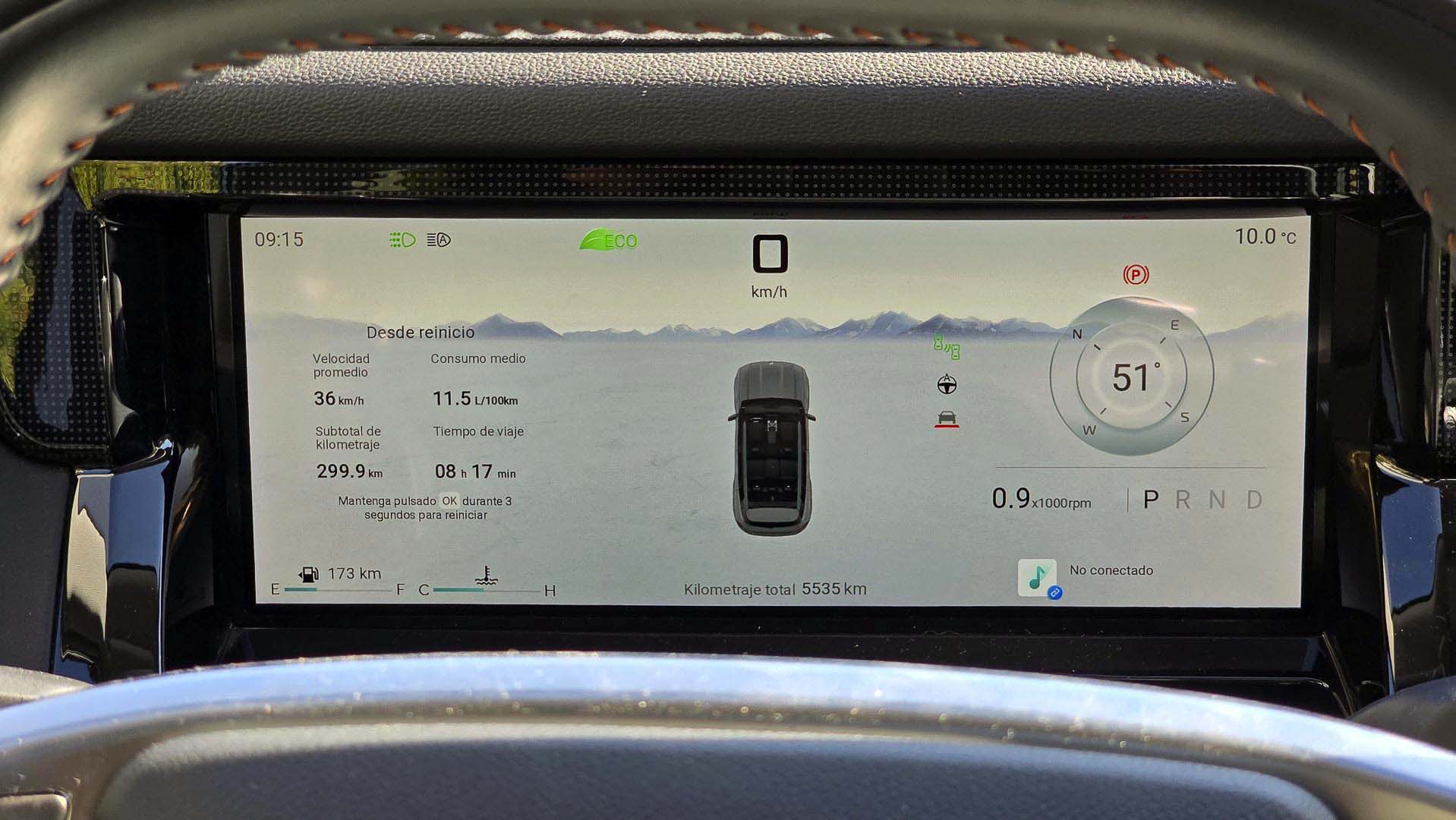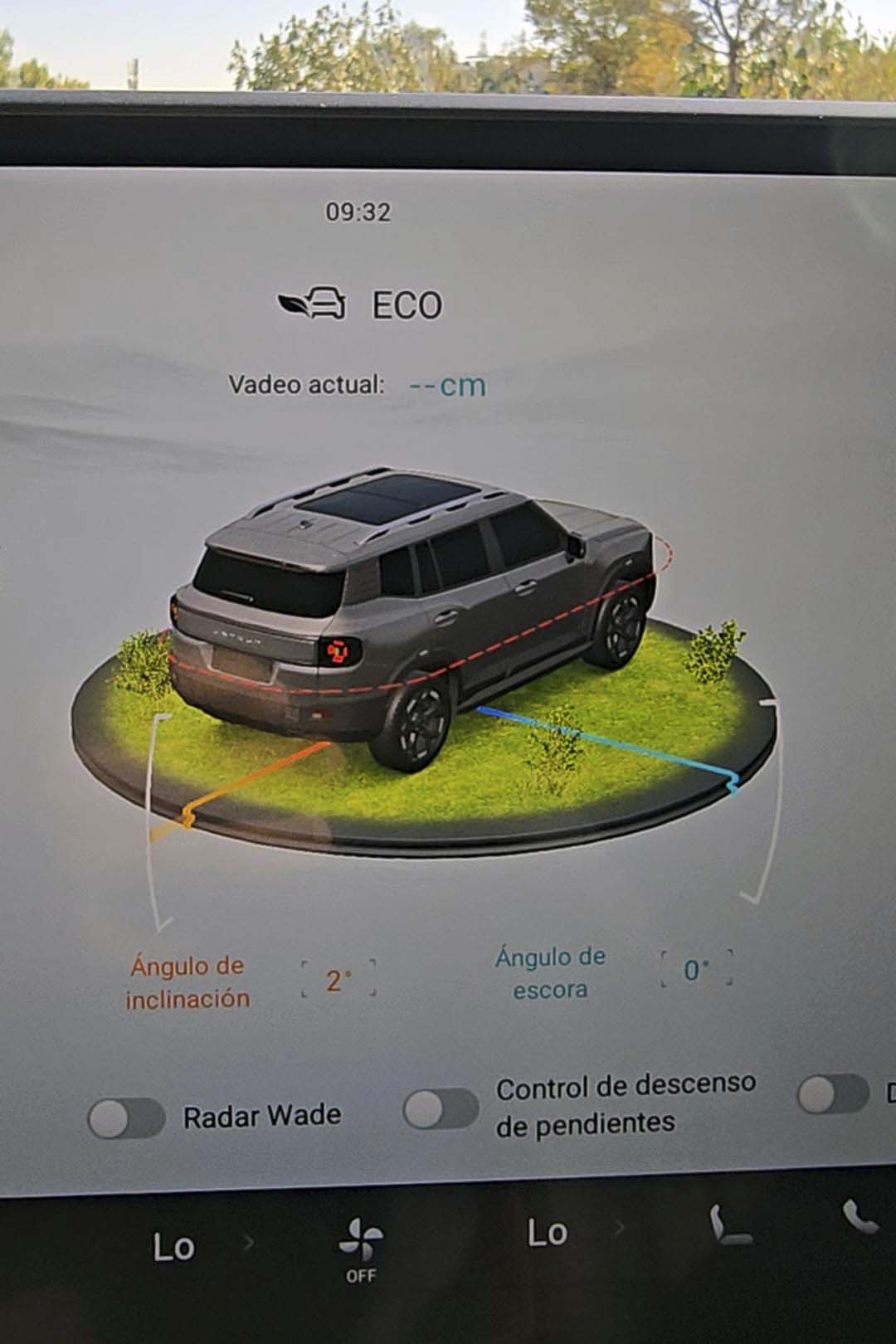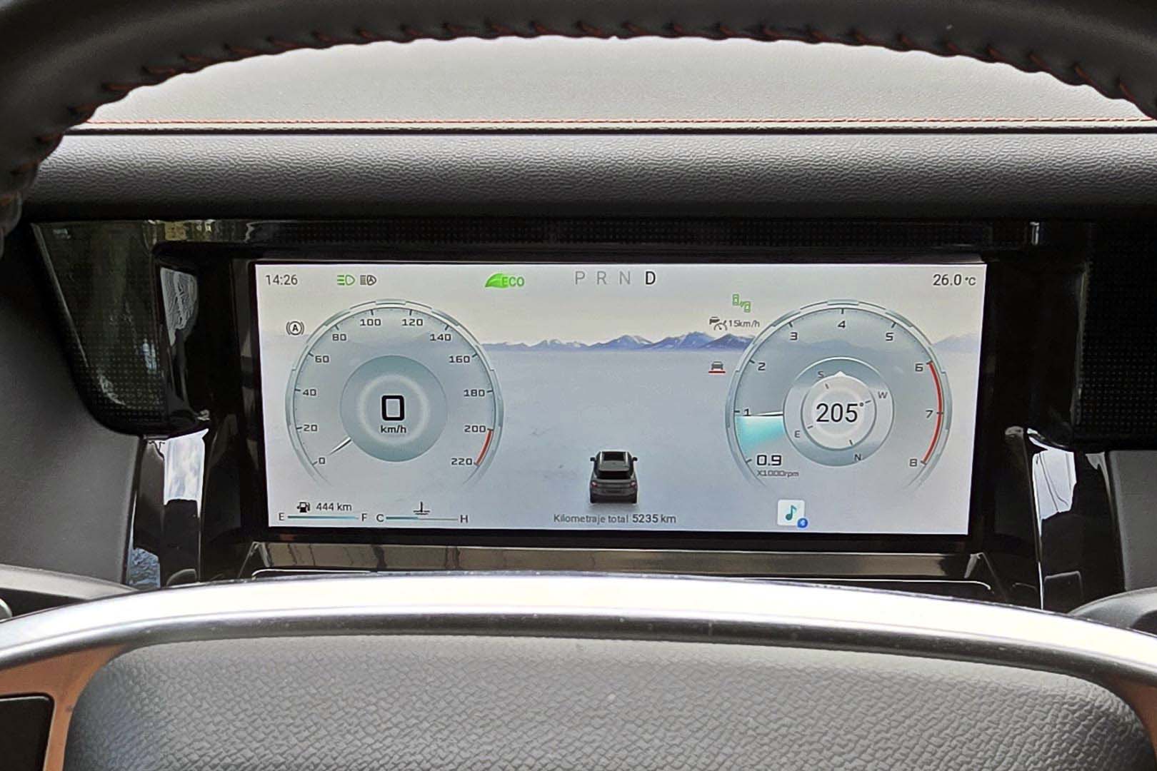 En el centro del tablero resalta una pantalla de 15.6 pulgadas donde se gestionan prácticamente todas las funciones del vehículo como el ajuste de asientos, posición del volante, espejos, ventanas y el techo panorámico. Cuando toque salir a la aventura, hay un modo específico para todo terreno que nos brinda información vital como el ángulo de inclinación, presión de los neumáticos, las cámaras alrededor y una de las novedades que en mi experiencia no había visto, el nivel de vadeo.