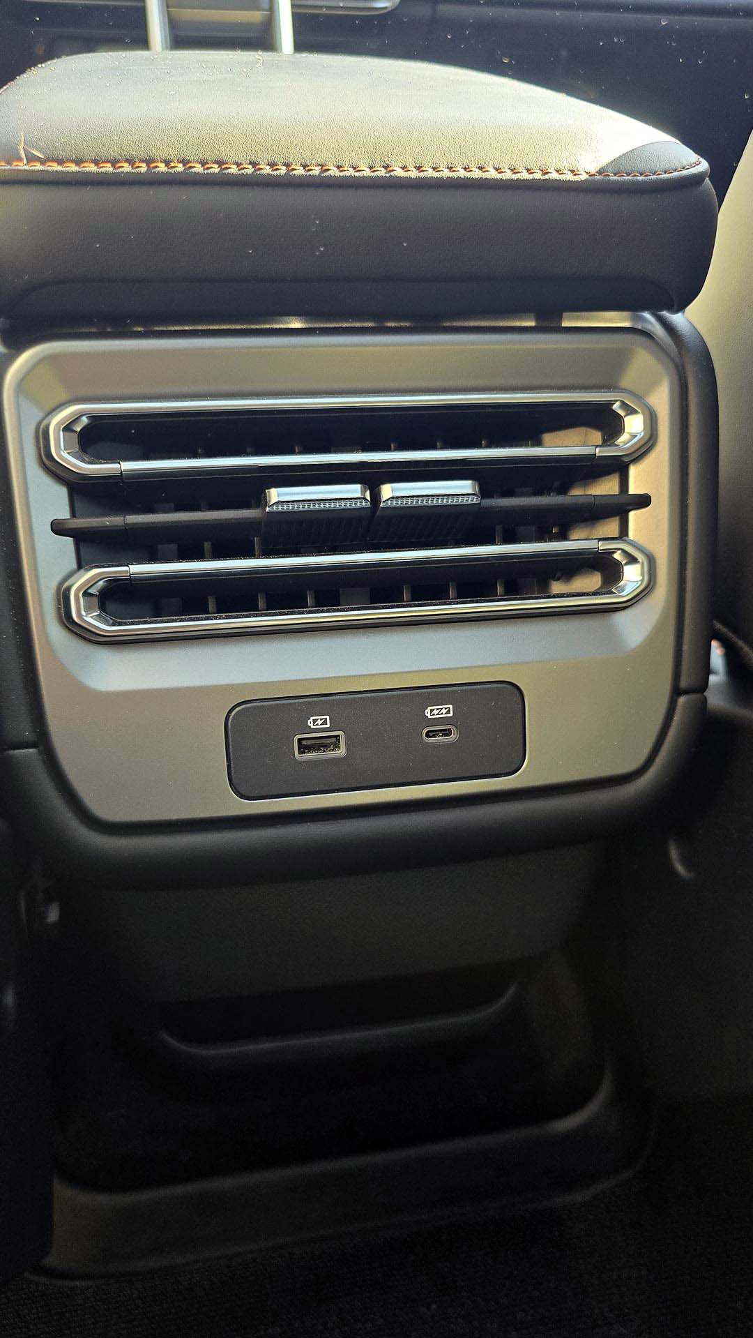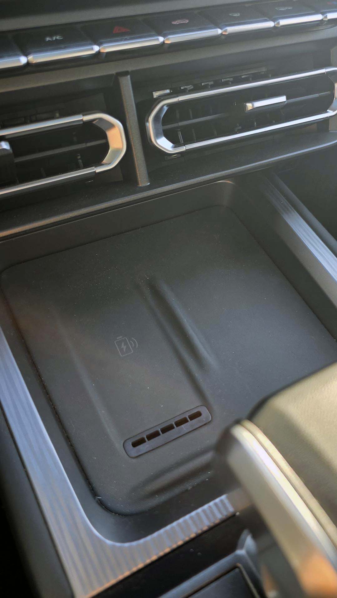 Para la conectividad tenemos el sistema Apple CarPlay y Android Auto inalámbricos, aunque también tenemos puertos USB (A y C) debajo de esta pantalla para carga, si aún necesitas más maneras de cargar tu celular, también cuenta con un cargador inalámbrico de 50W (de carga rápida) con ventilación para tu dispositivo y dos entradas más en la parte trasera del descansabrazos.