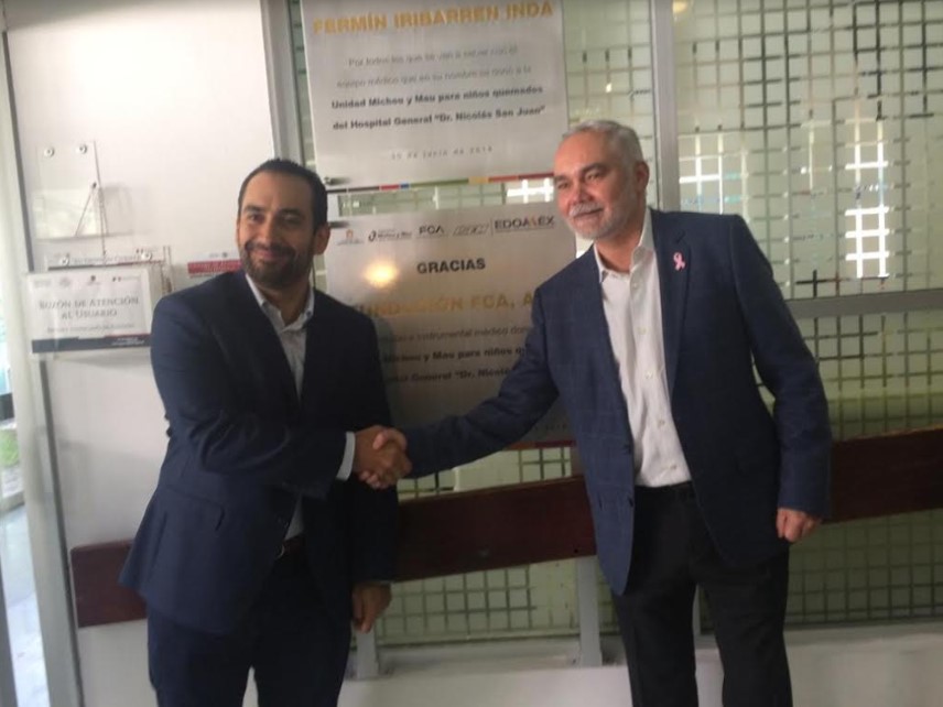Fundación FCA a través de Fundación Michou y Mau entregaron al Hospital General de Toluca, “Dr. Nicolás San Juan”, equipo especializado para la Unidad de Terapia Intensiva para niños quemados. Este equipo ayudará a aquellos menores de edad que hayan sufrido algún tipo de lesión por quemadura con equipo especializado con tecnología de punta. Durante