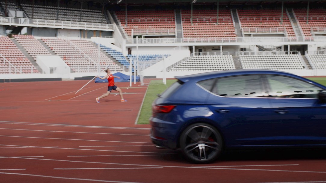 Barbora Špotáková, campeona olímpica de jabalina y embajadora de SEAT, consiguió dos medallas de oro en Pekín 2008 y Londres 2012. Mientras se entrena para su próxima cita deportiva, acepta un nuevo reto: medirse con el SEAT León CUPRA. El estadio de la Asociación de fútbol de la República Checa sirve de escenario para la carrera en la que
