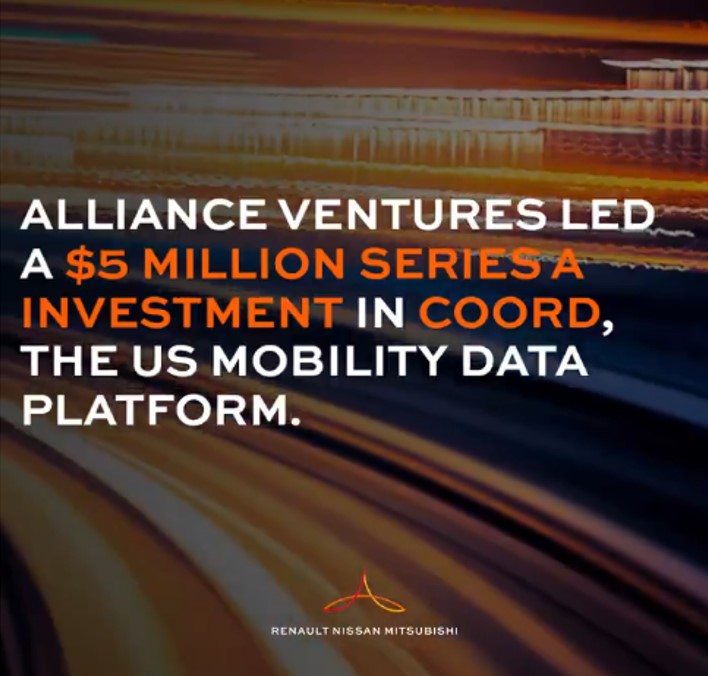 Alliance Ventures, el fondo de capital de riesgo corporativo de Renault-Nissan-Mitsubishi, el grupo automotriz más grande del mundo, anuncia que lideró una inversión Serie A de cinco millones de dólares en Coord, la plataforma de datos de movilidad de Estados Unidos. La más reciente inversión de Alliance Ventures también está respaldada por fondos adicionales de Trucks, Urban.Us,